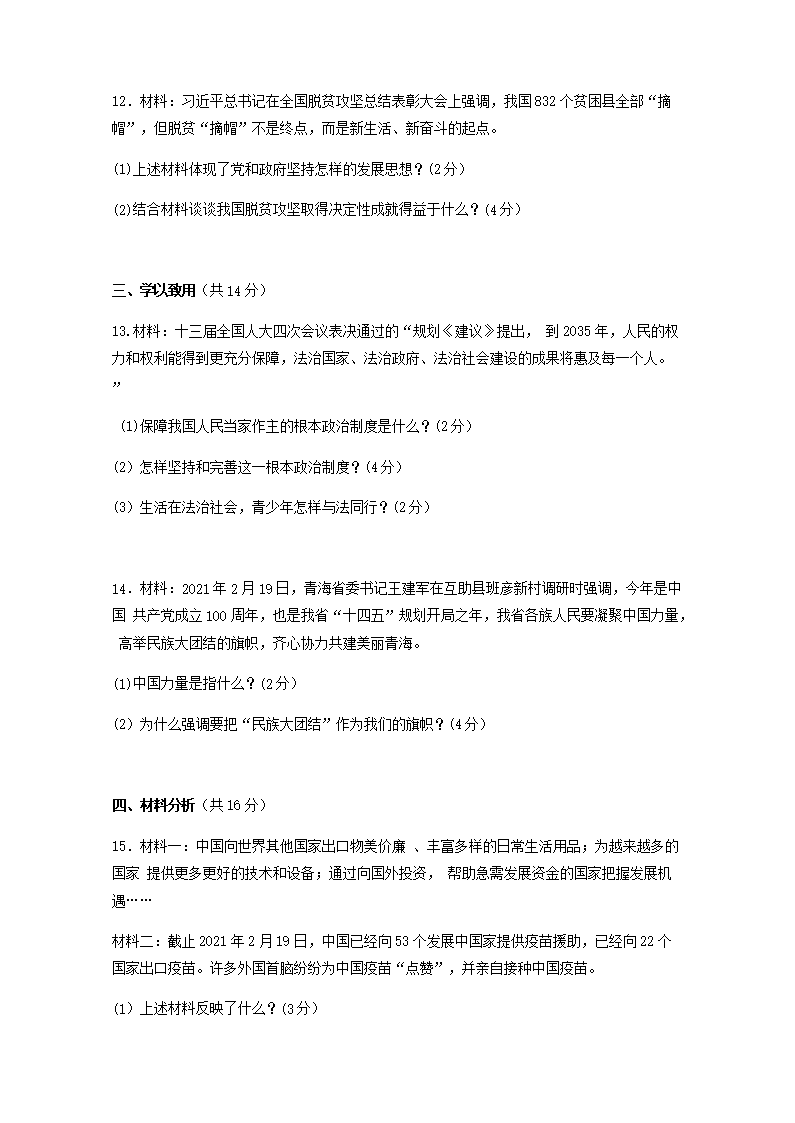 【文档名称】 2021年青海海西中考政治试题及答案(Word版).doc