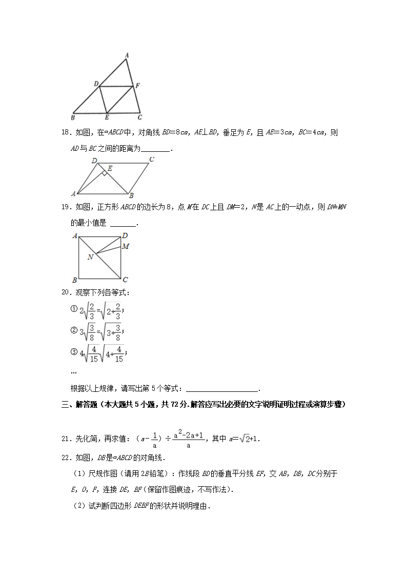 【文档名称】 2021年青海海东中考数学试题及答案(Word版).doc