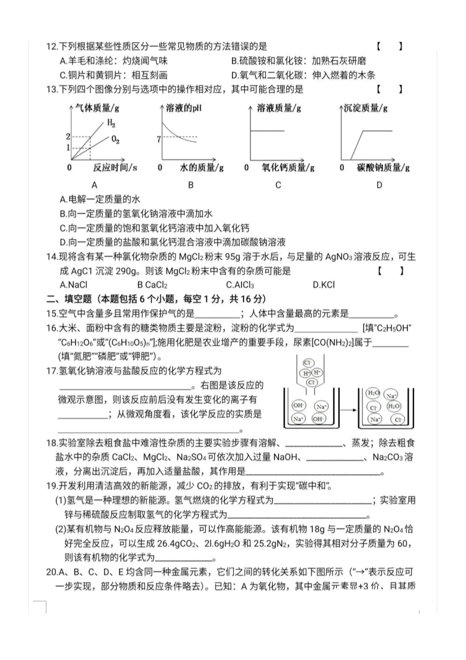 【文档名称】 2021年河南信阳中考化学试题及答案(图片版).doc