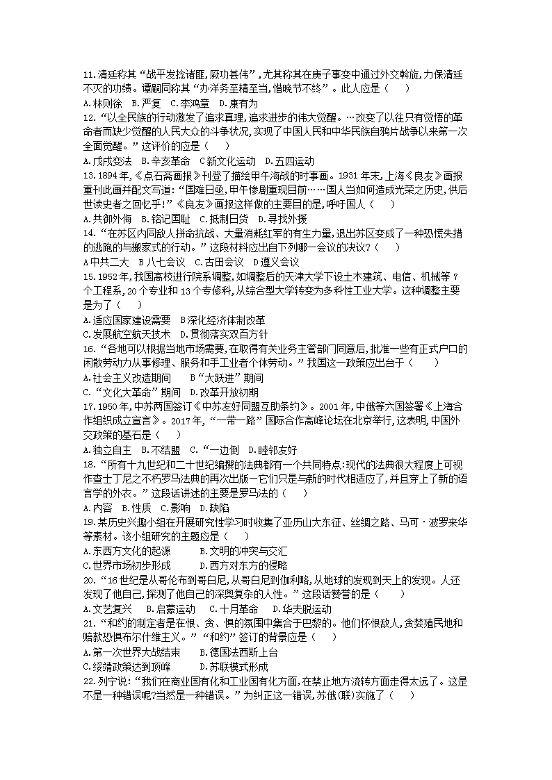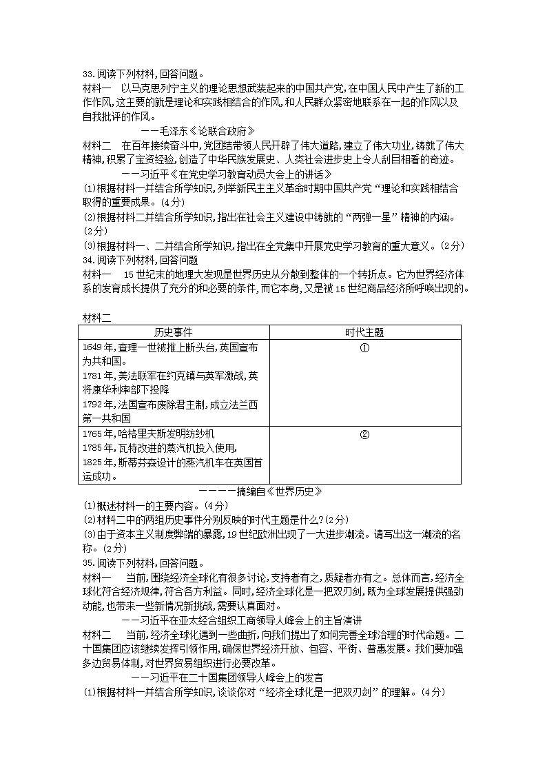 【文档名称】 2021年山东省聊城市中考历史真题及答案(Word版).doc