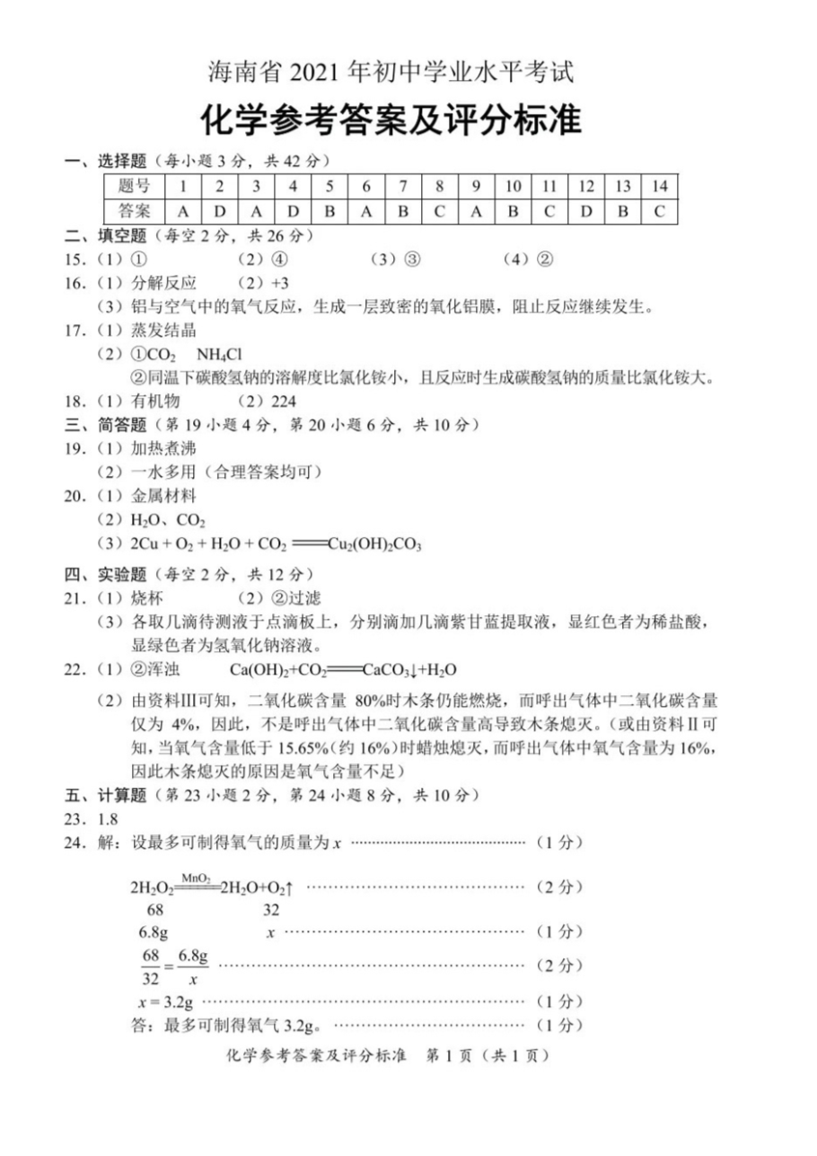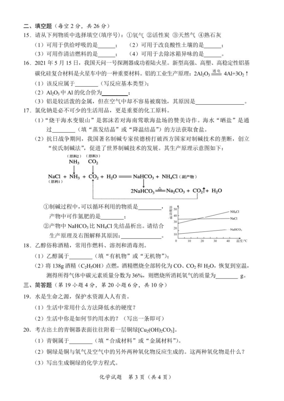 【文档名称】 2021年海南三亚中考化学试题及答案(图片版).doc