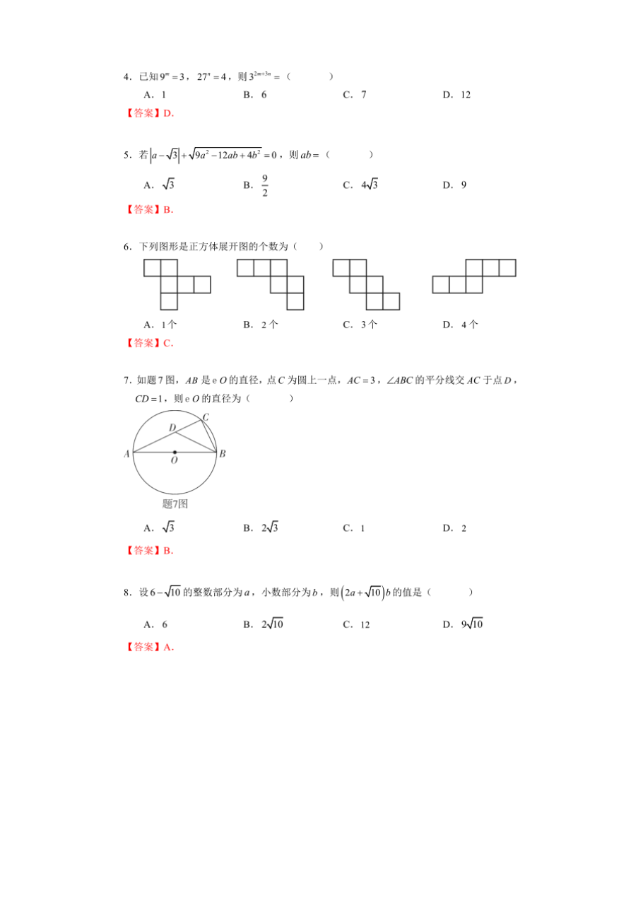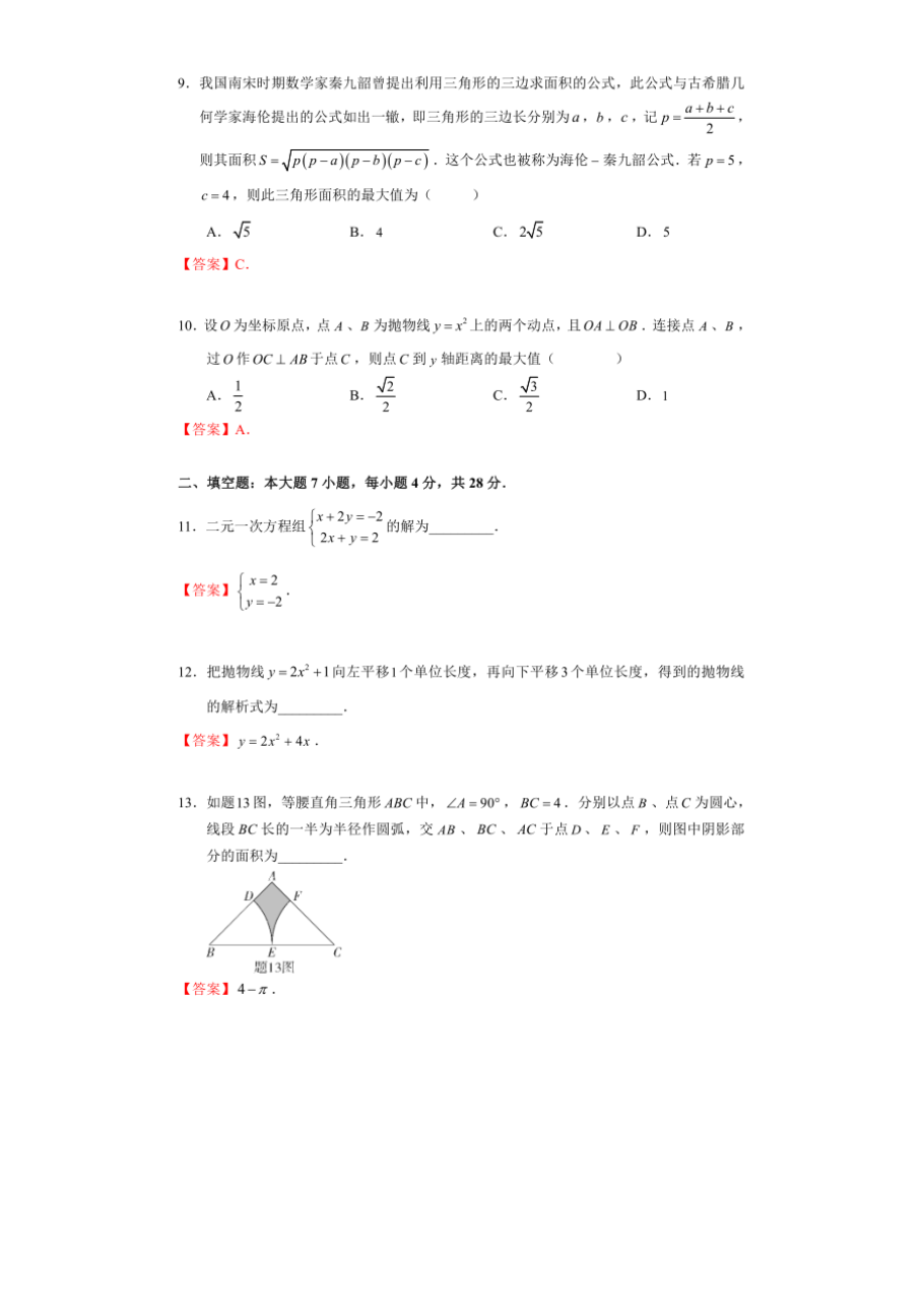 【文档名称】 2021年广东潮州中考数学试题及答案(图片版).doc