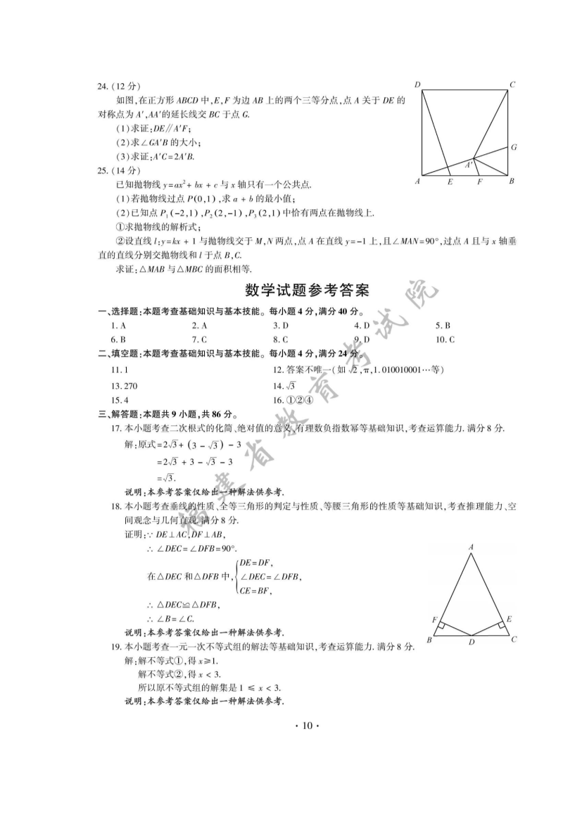 【文档预览】 无忧考网整理发布2021年福建龙岩中考数学真题及答案(图片版),前五页预览如下: