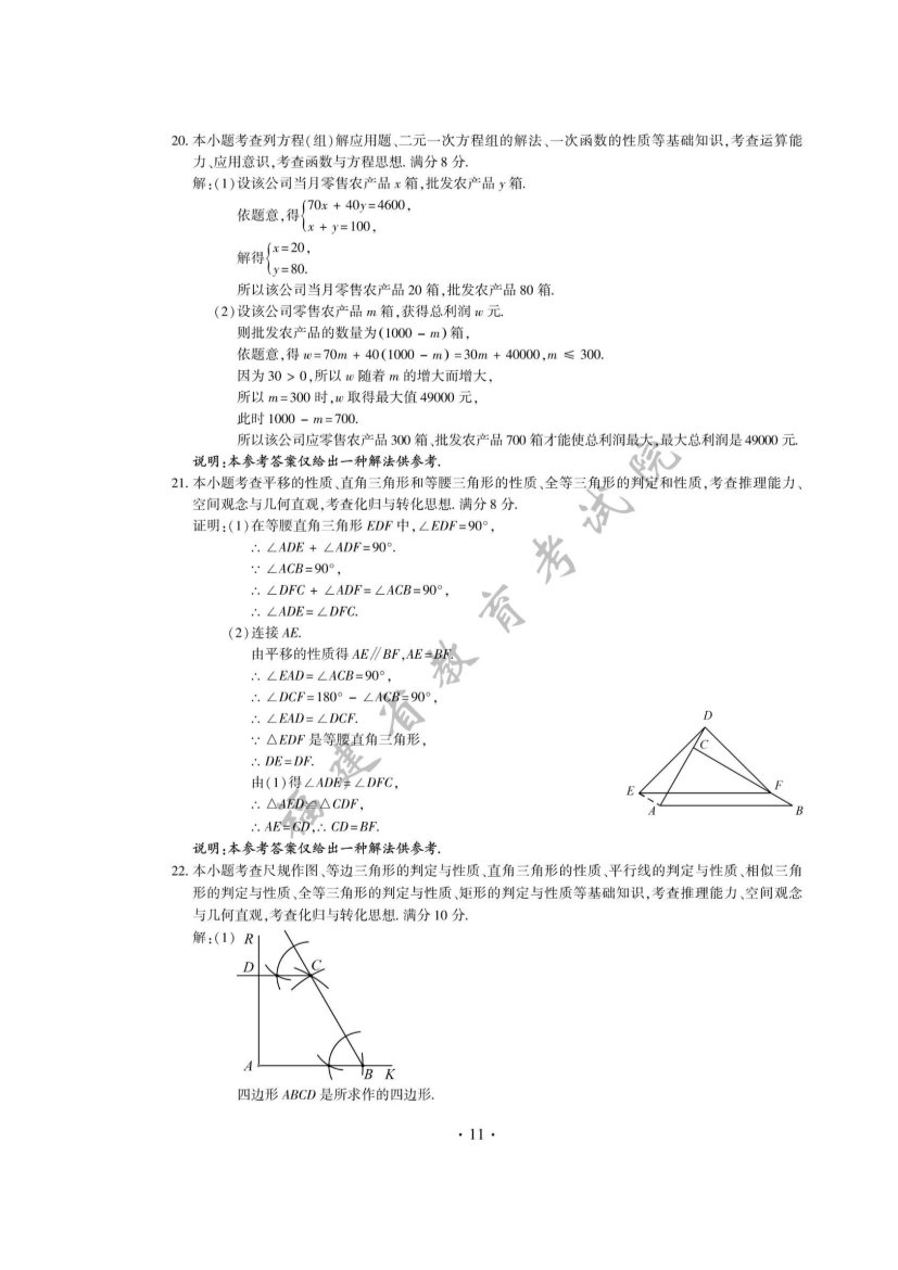 【文档预览】 无忧考网整理发布2021年福建南平中考数学真题及答案(图片版),前五页预览如下: