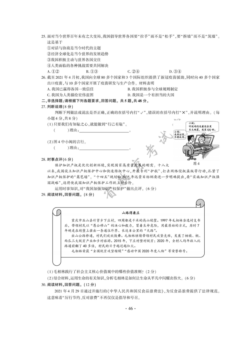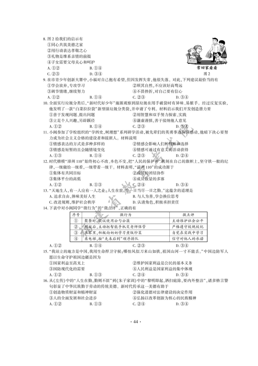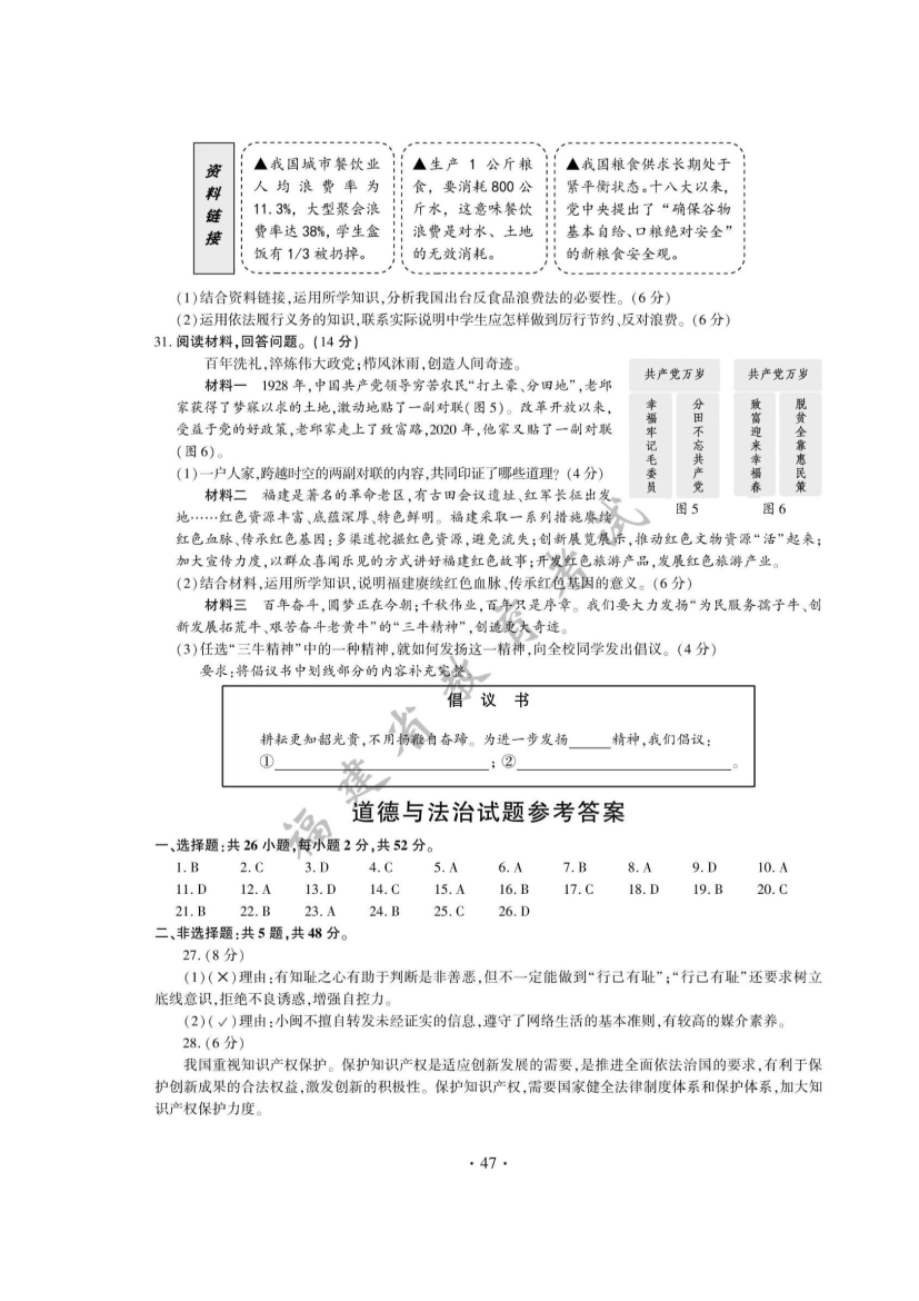 【文档名称】 2021年福建宁德中考政治真题及答案(图片版).doc
