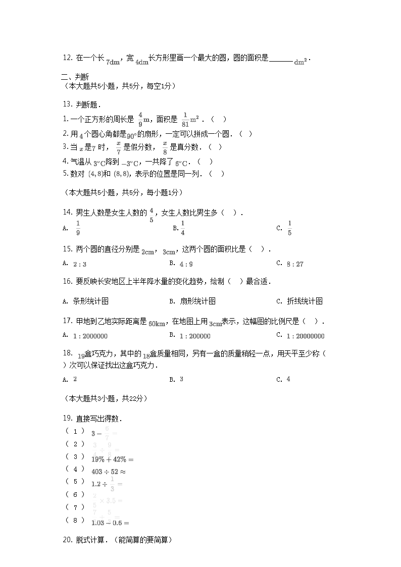 【文档名称】 2020年陕西西安长安区小升初数学真题(Word版).doc