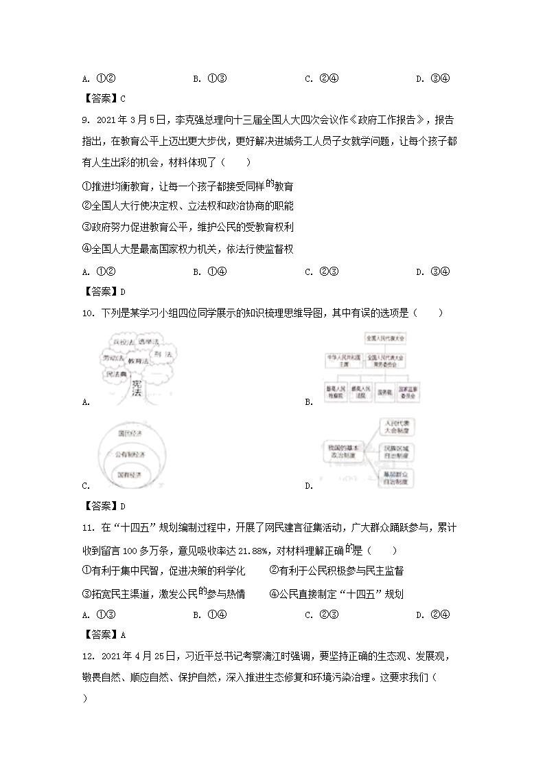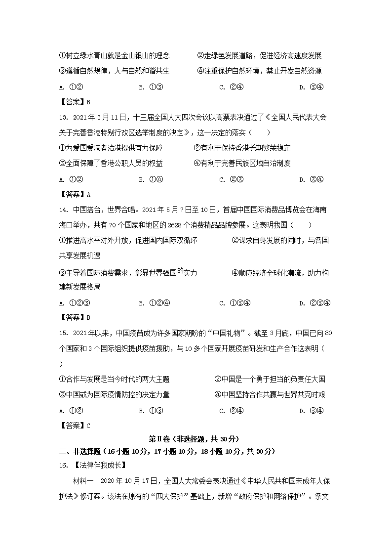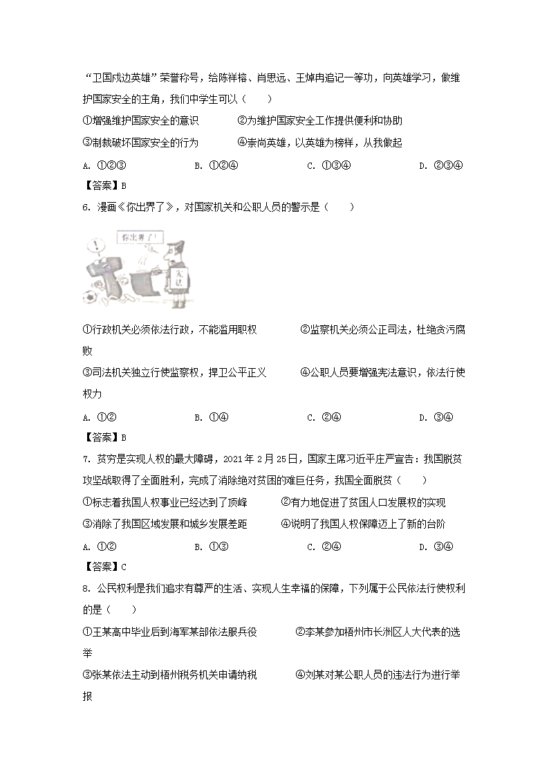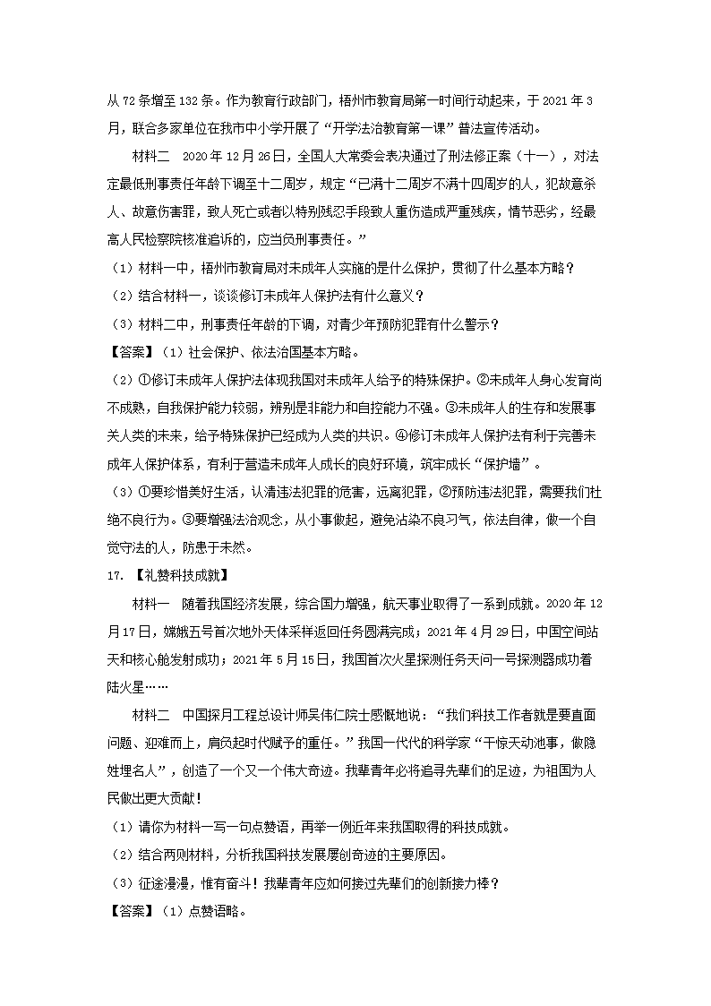 【文档名称】 2021年广西梧州中考政治真题及答案(Word版).doc