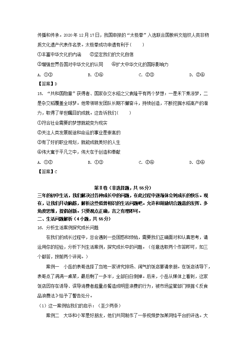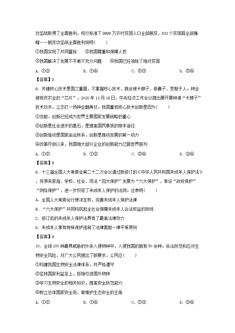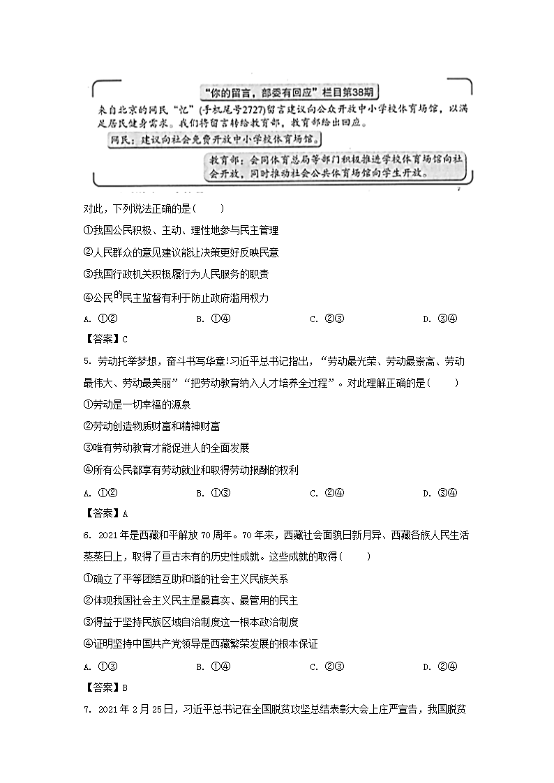 【文档名称】 2021年山东省潍坊市中考政治真题及答案(Word版).doc