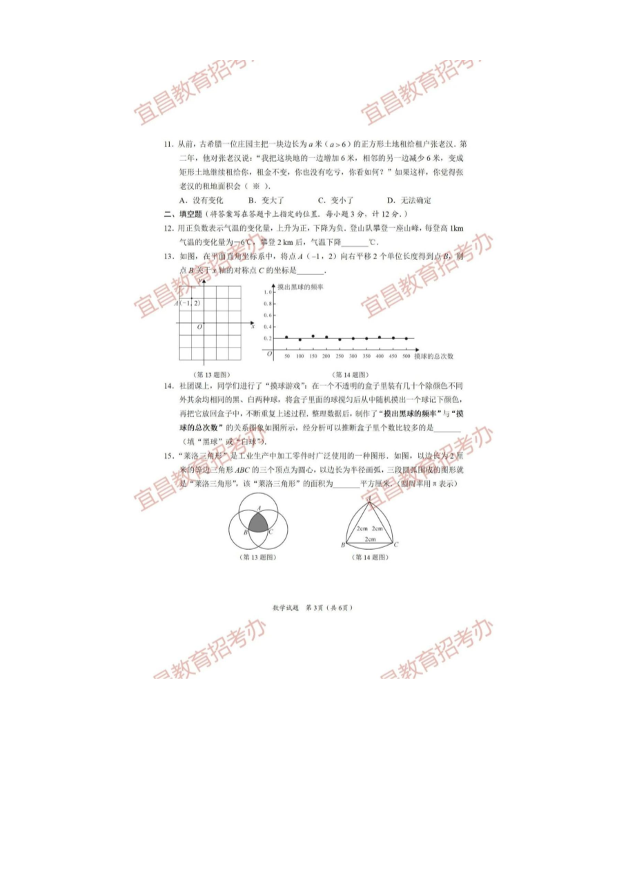 【文档名称】 2021年湖北省宜昌市中考数学试题及答案(图片版).doc