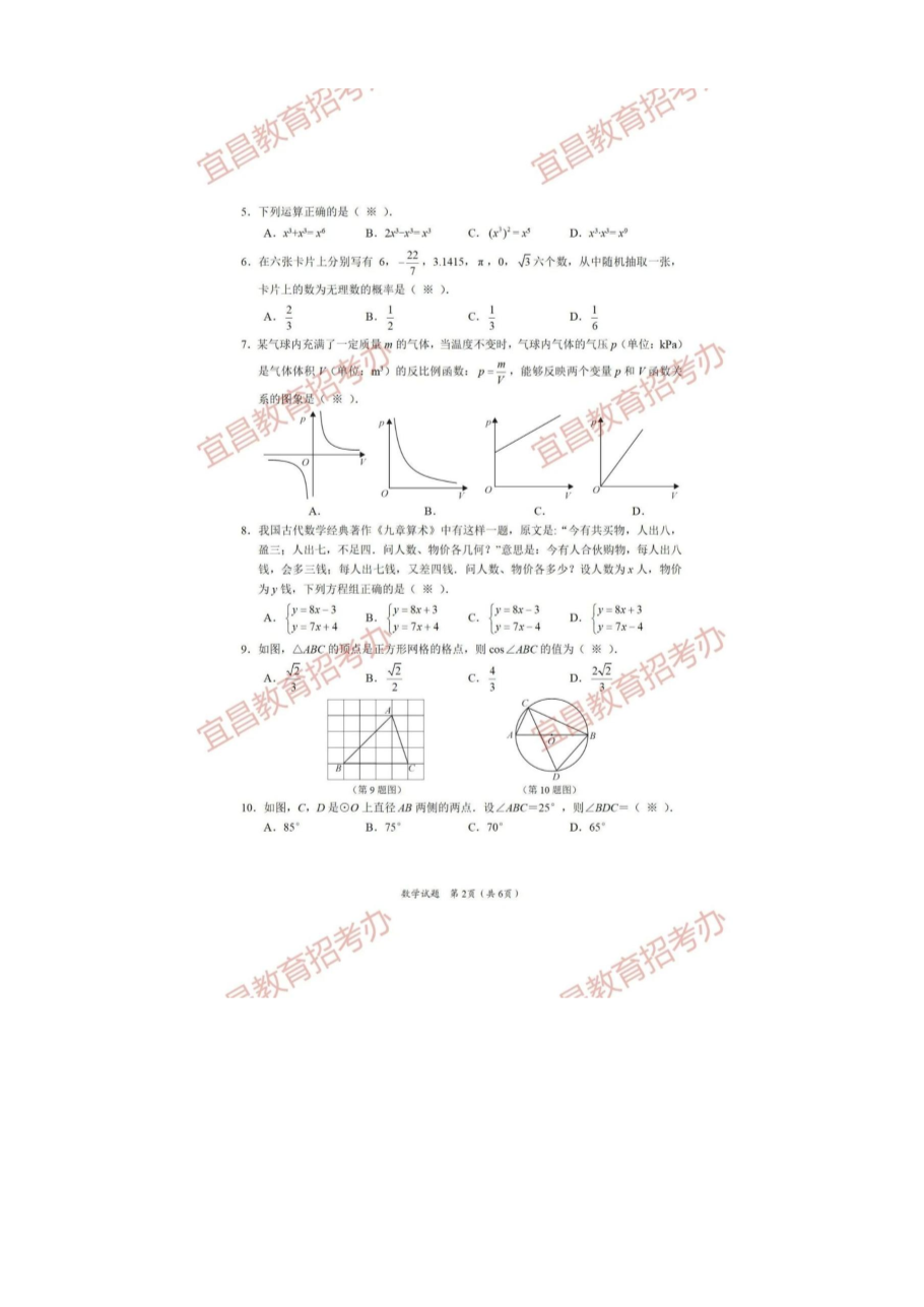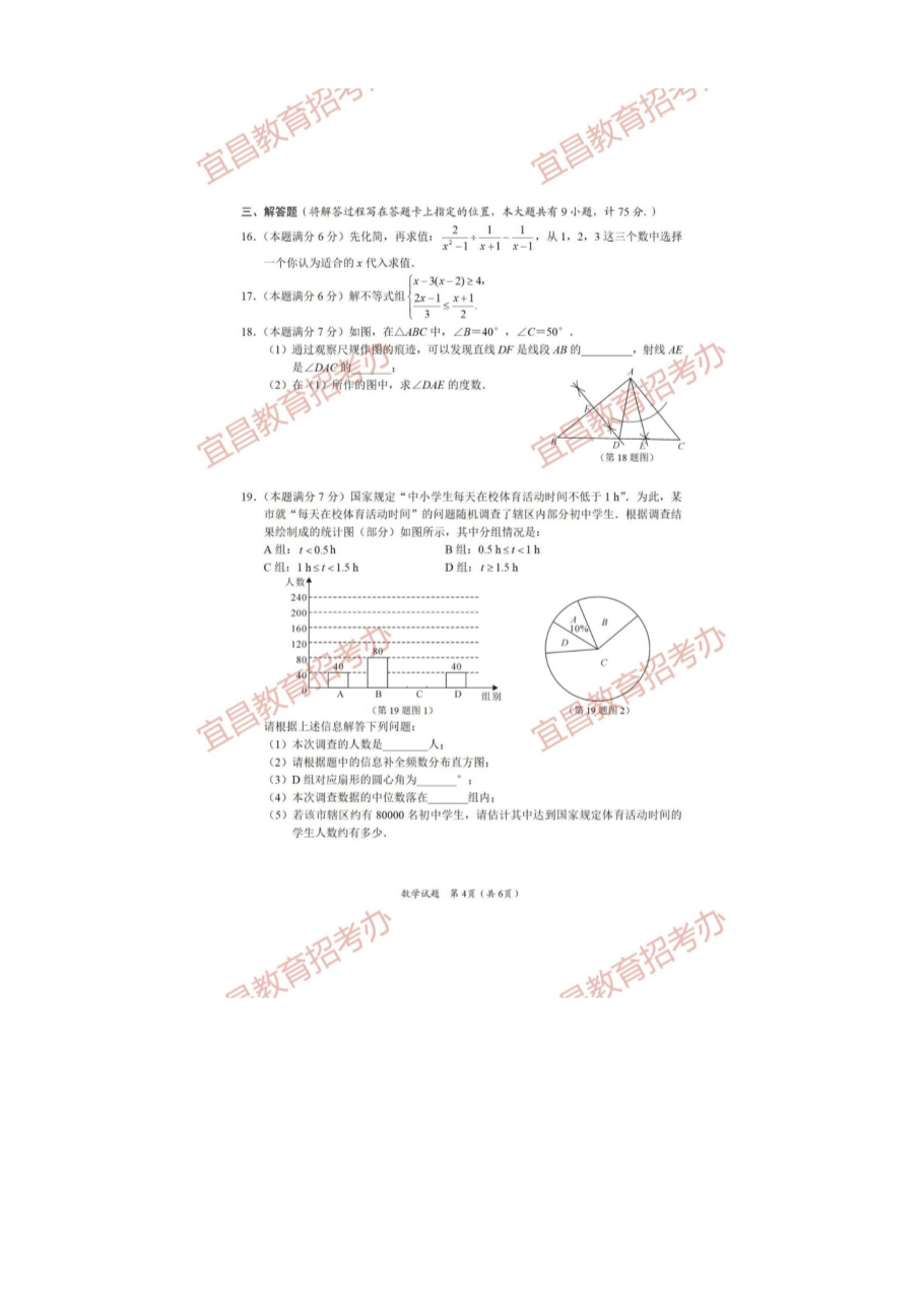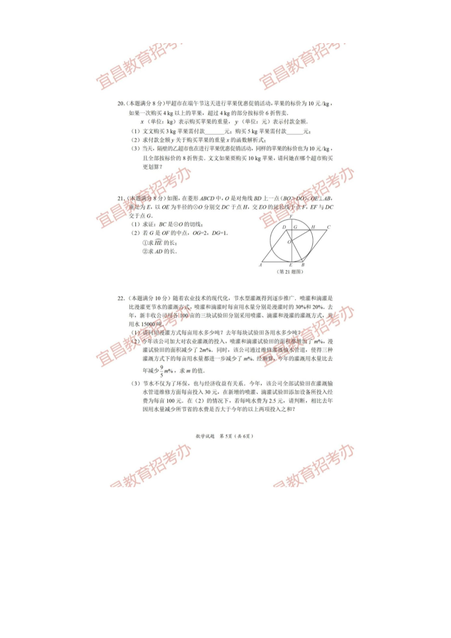 【文档预览】 无忧考网整理发布2021年湖北省宜昌市中考数学试题及答案(图片版),前五页预览如下: