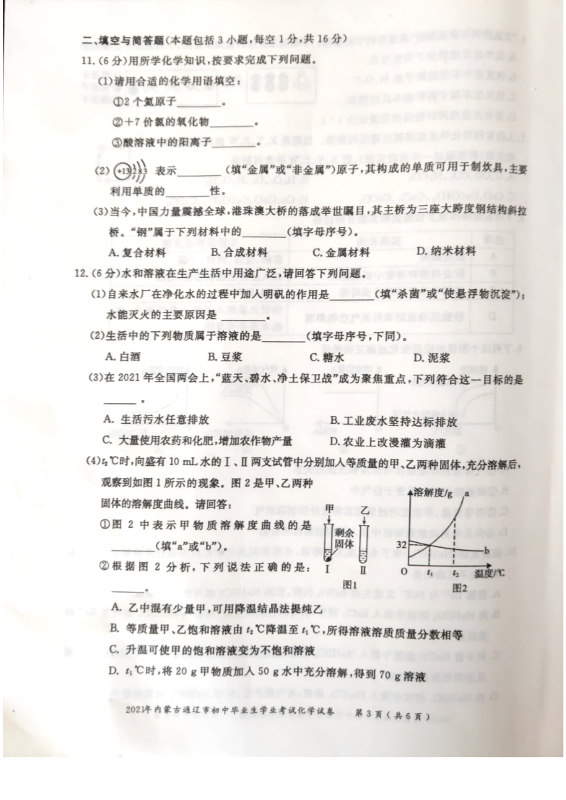 【文档名称】 2021年内蒙古通辽中考化学真题(图片版).doc