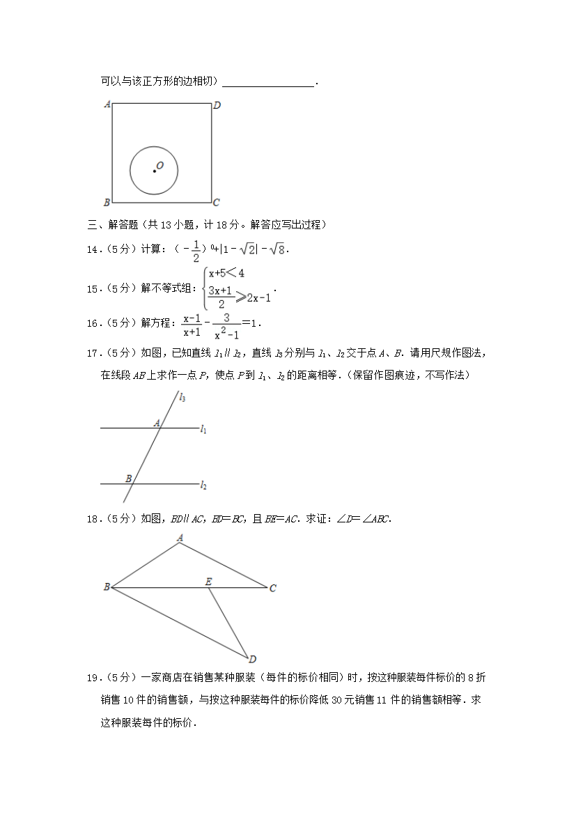 【文档预览】 无忧考网整理发布2021年陕西省中考数学真题及答案(Word版),前五页预览如下: