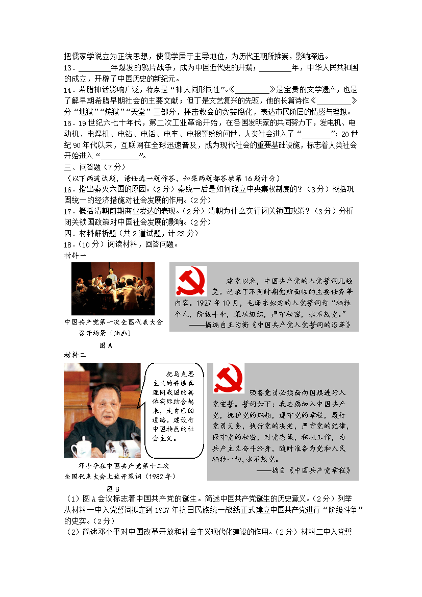 【文档名称】 2021年陕西榆林中考历史真题及答案(Word版).doc