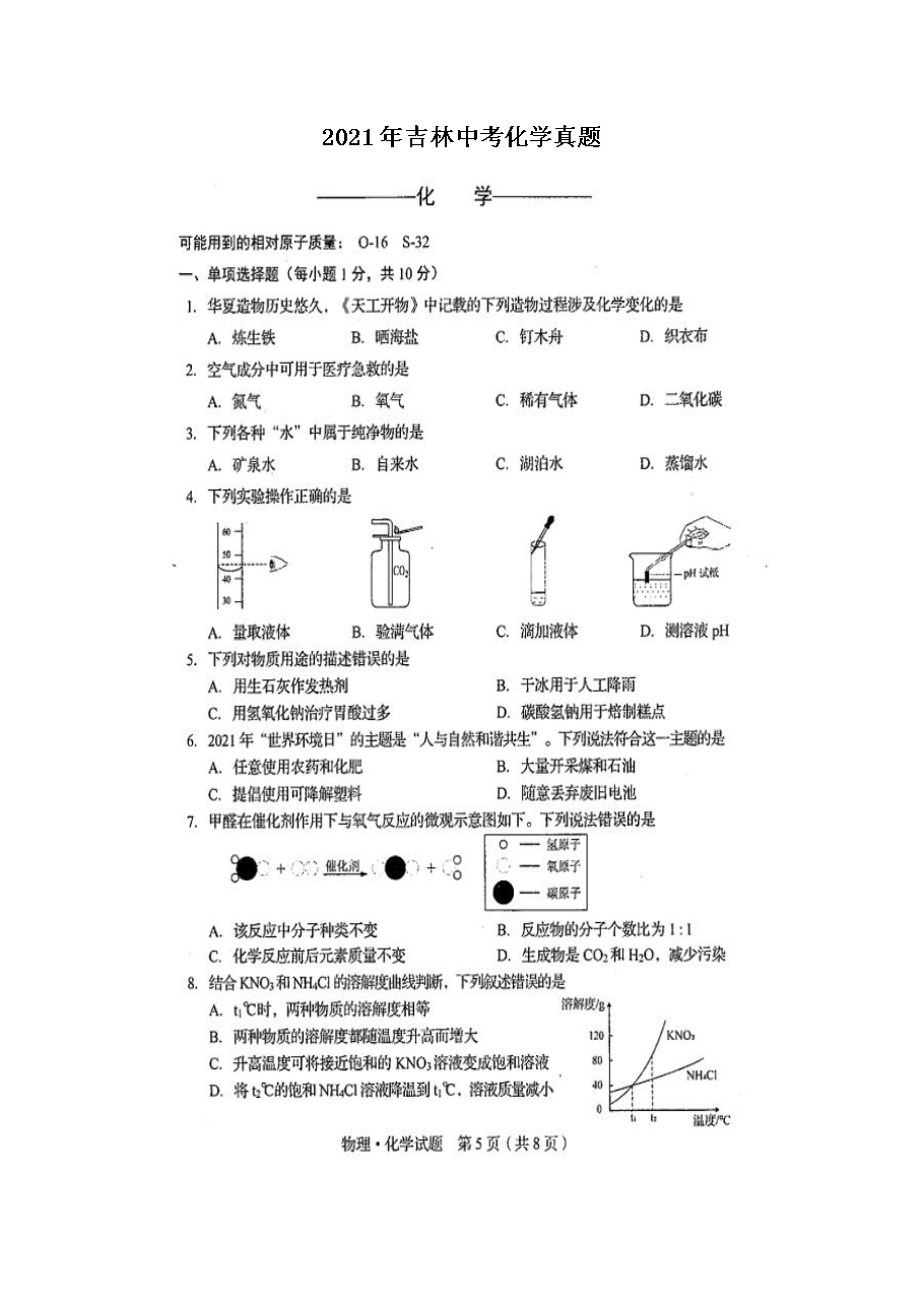 【文档名称】 2021年吉林中考化学真题(图片版).doc