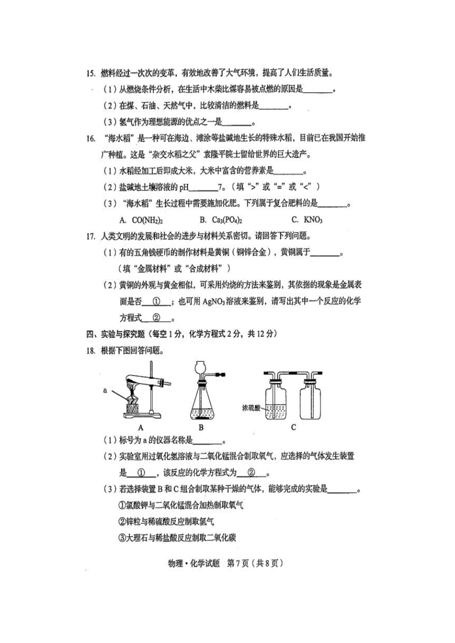 【文档预览】 无忧考网整理发布2021年吉林中考化学真题(图片版),前五页预览如下: