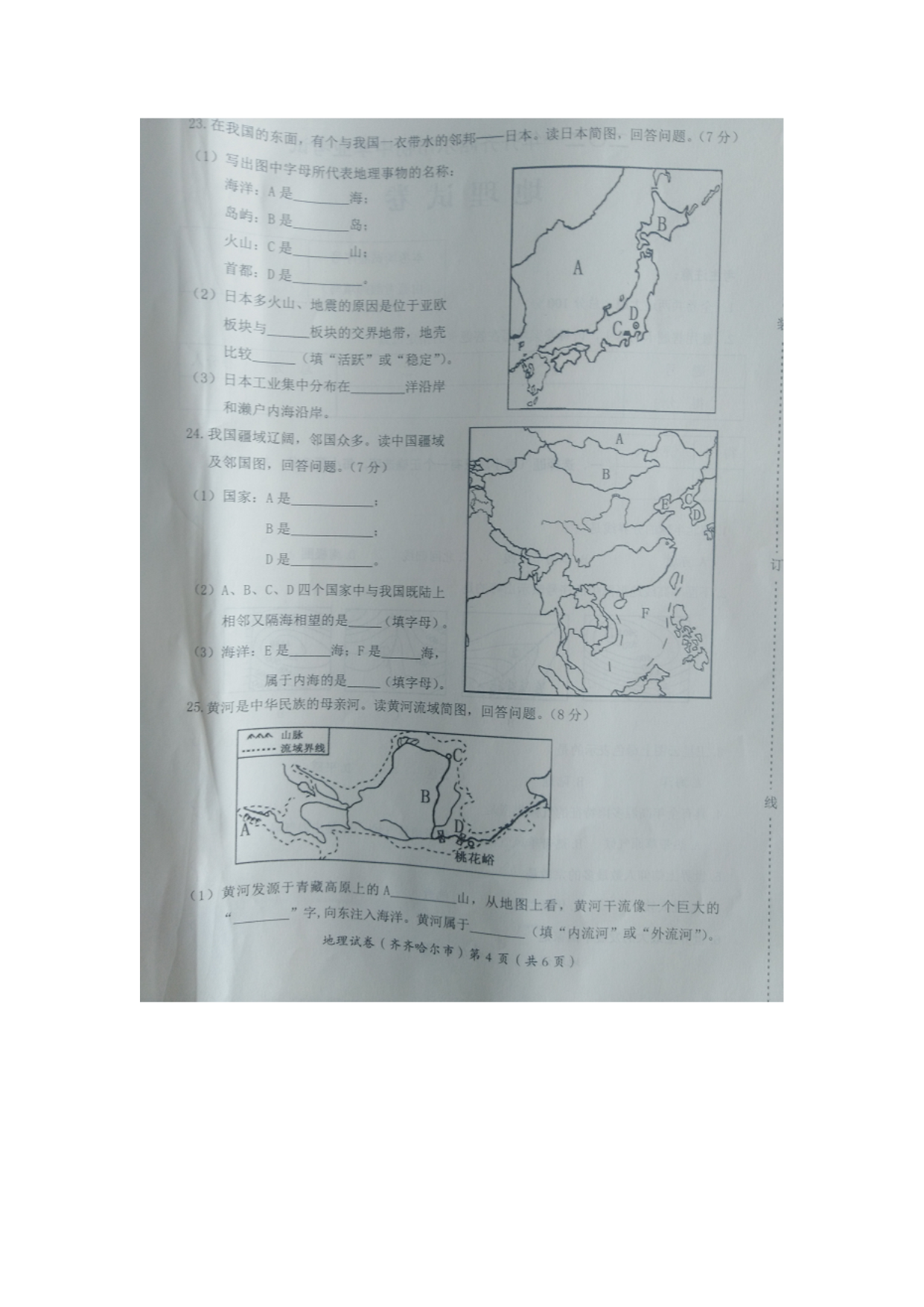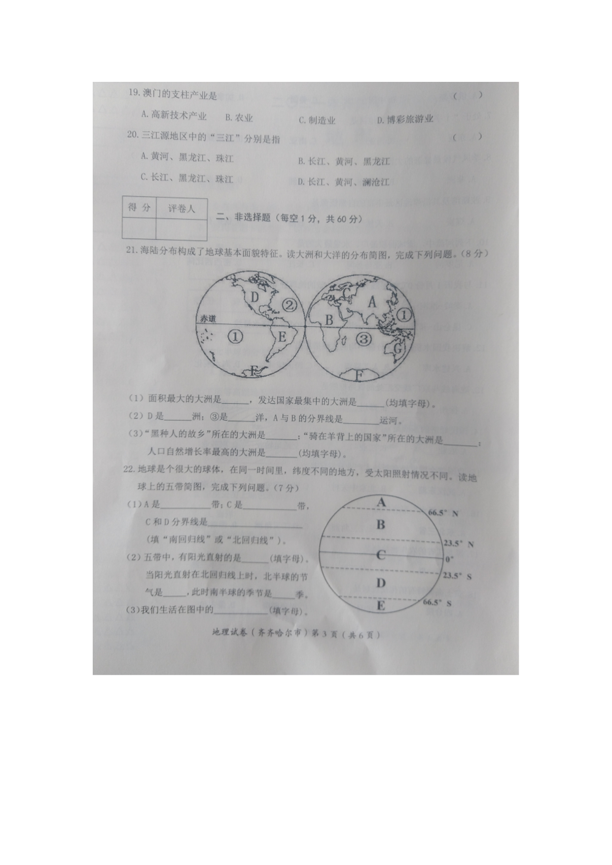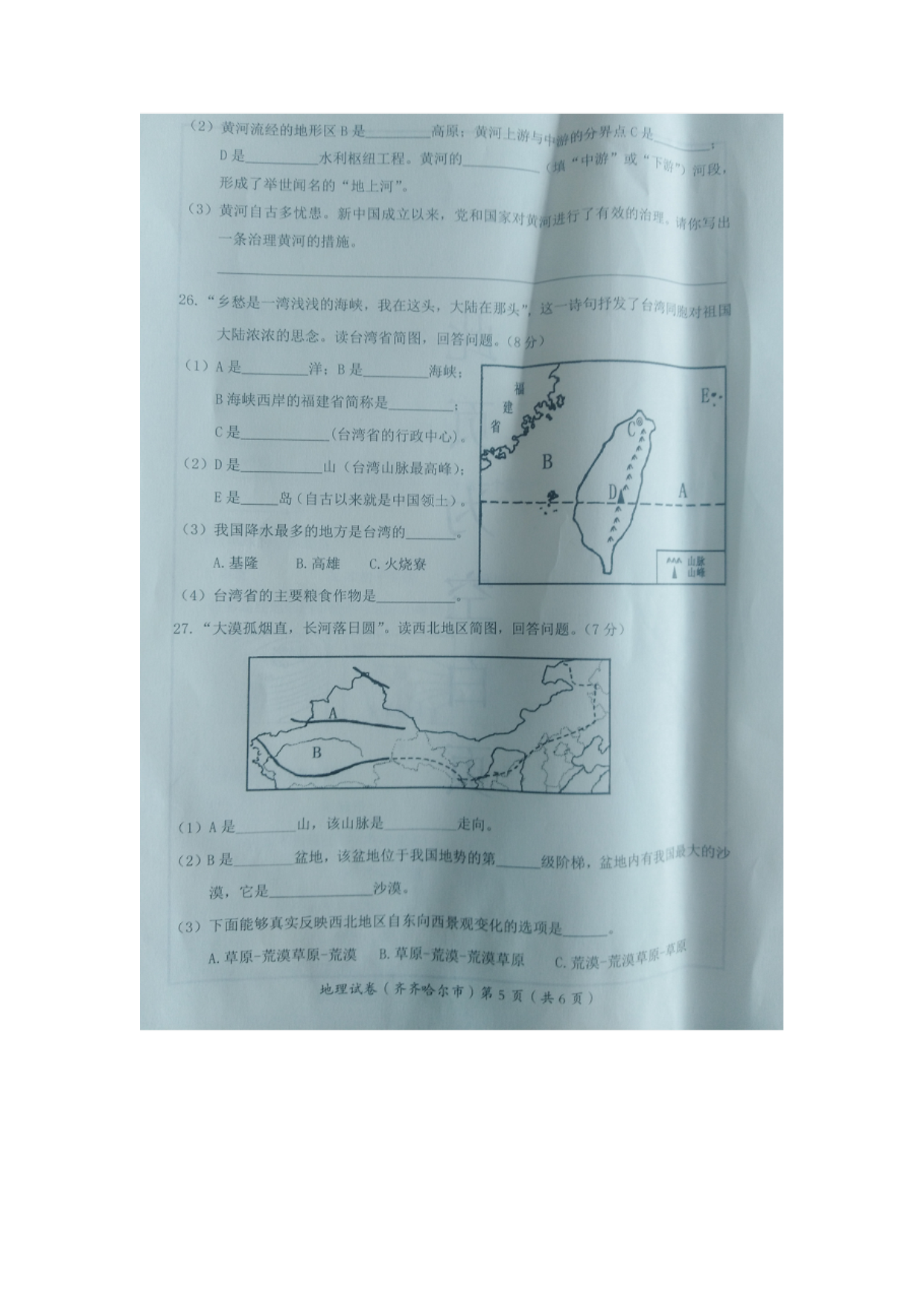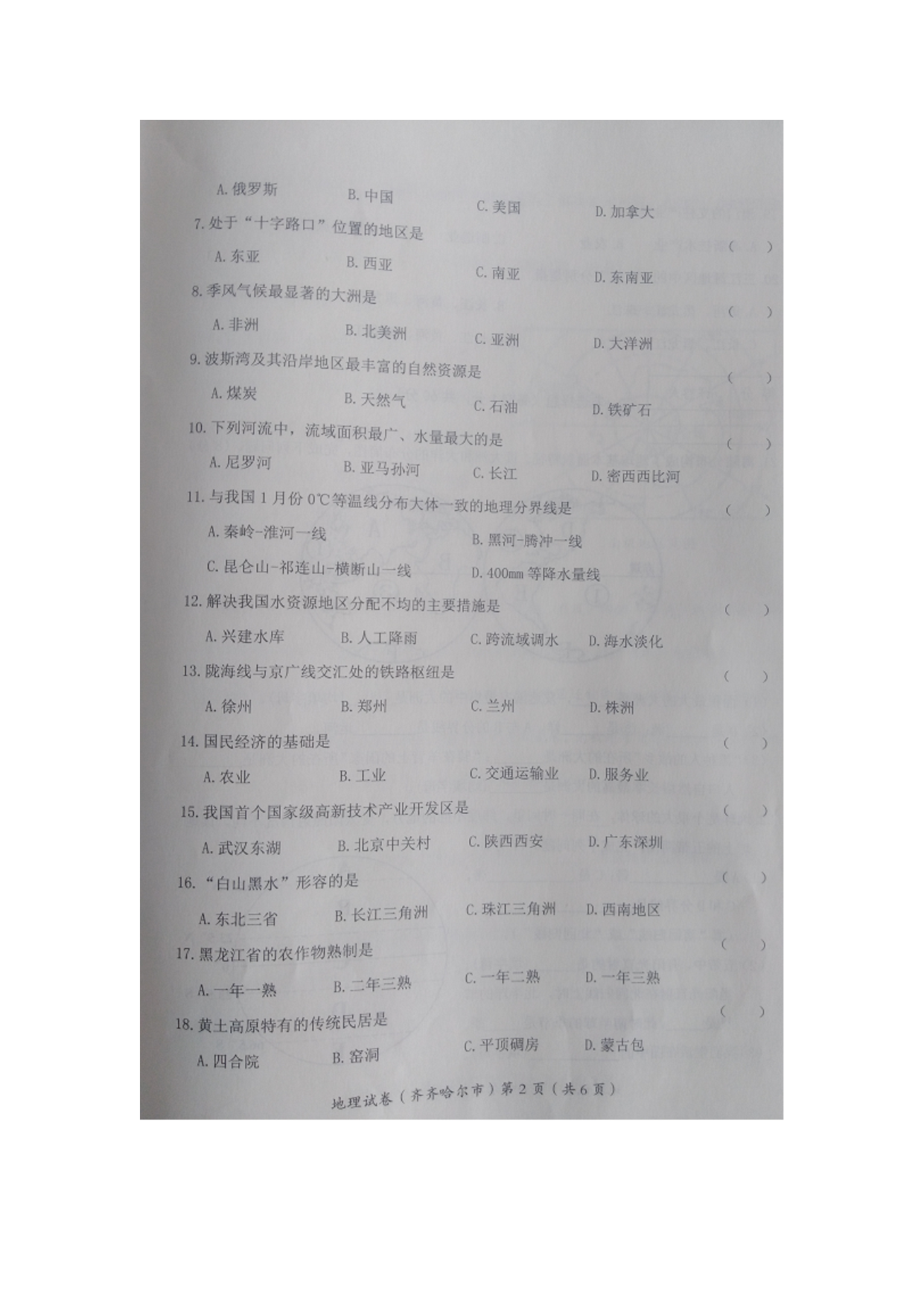 【文档名称】 2021黑龙江齐齐哈尔中考地理真题及答案(图片版).doc