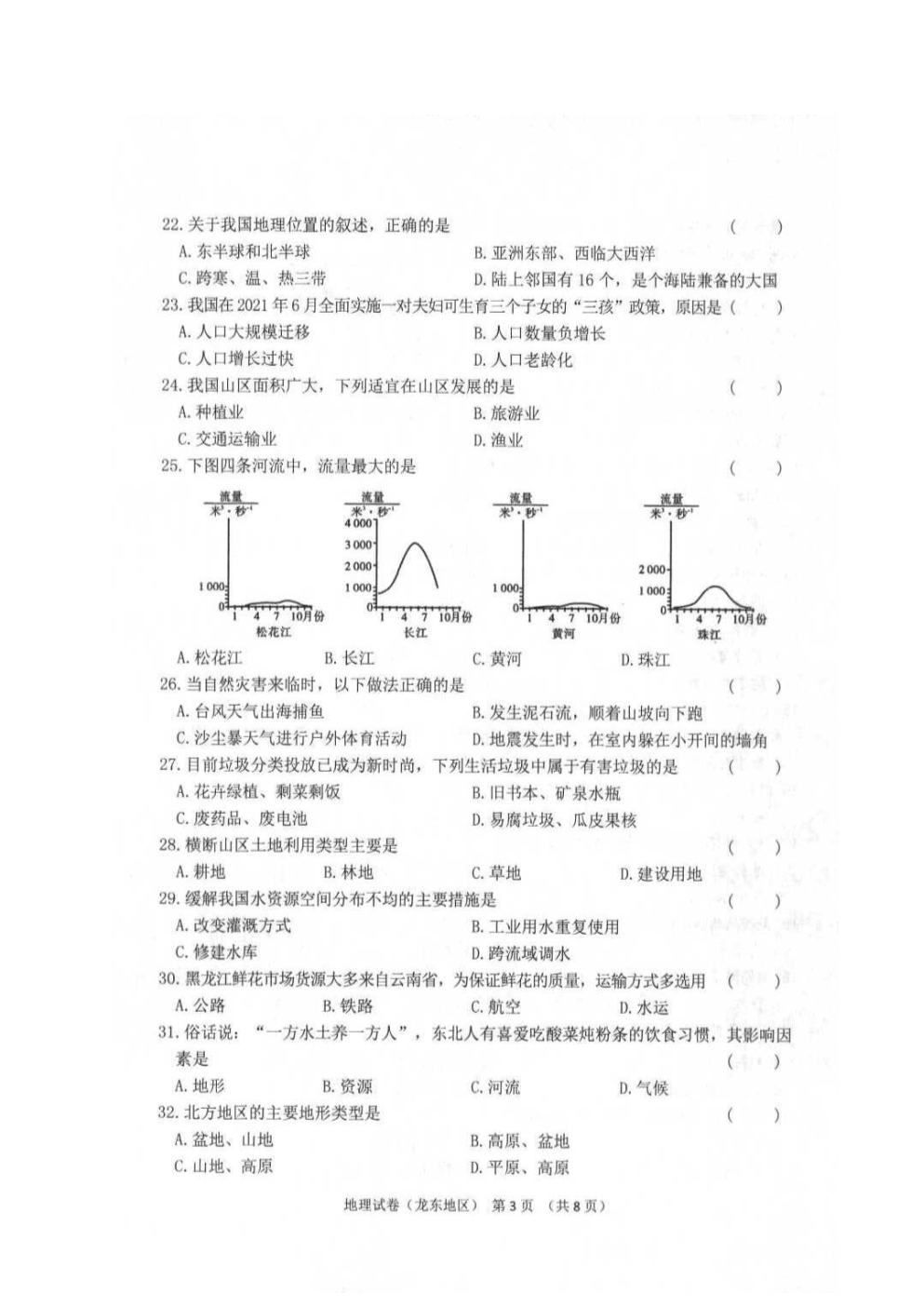【文档名称】 2021年黑龙江鹤岗中考地理真题及答案(图片版).doc