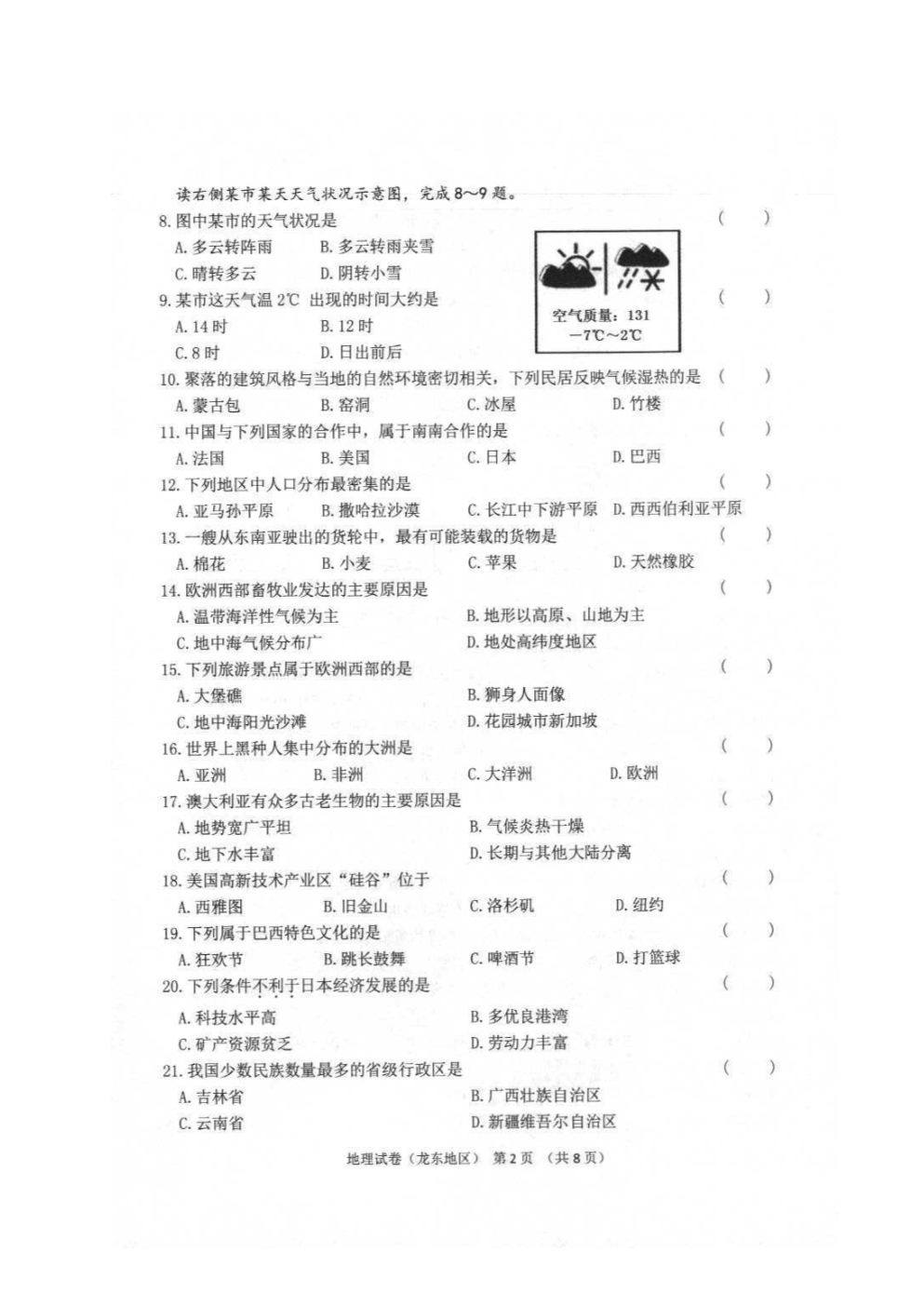 【文档名称】 2021年黑龙江佳木斯中考地理真题及答案(图片版).doc