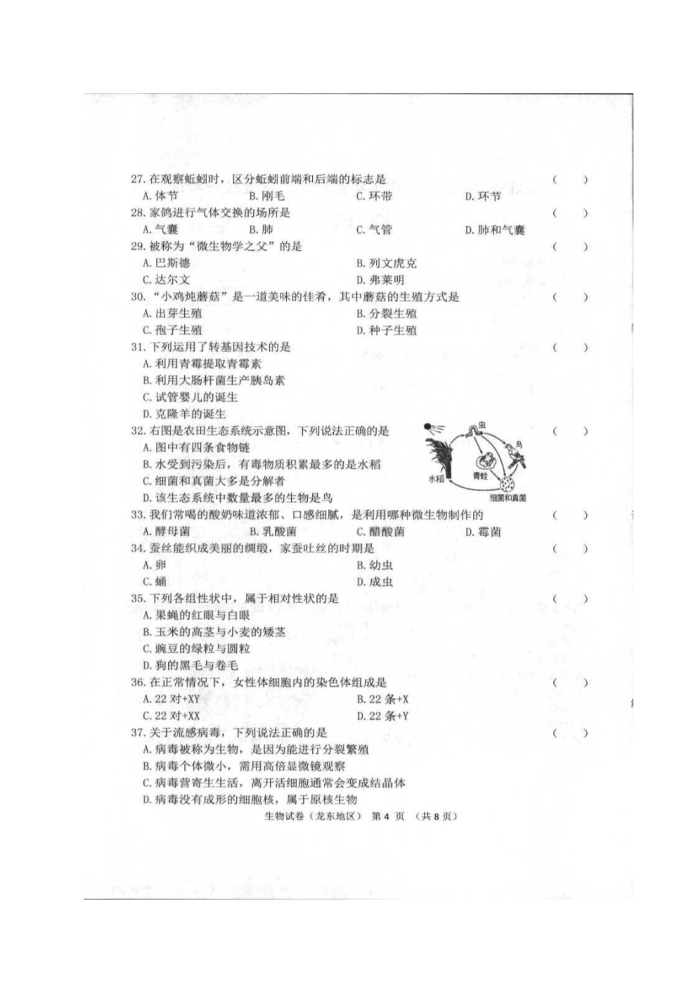 【文档名称】 2021年黑龙江佳木斯中考生物真题及答案(图片版).doc