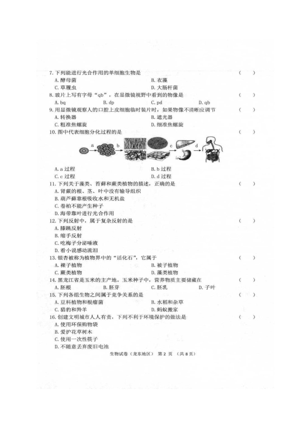 【文档预览】 无忧考网整理发布2021年黑龙江双鸭山中考生物真题及答案(图片版),前五页预览如下: