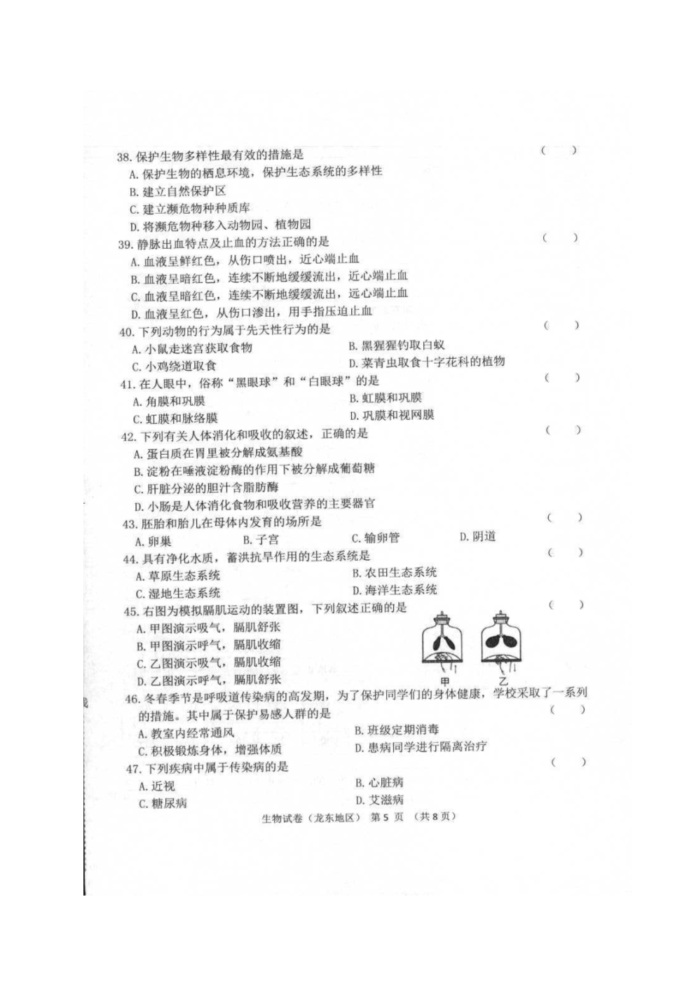 【文档名称】 2021年黑龙江双鸭山中考生物真题及答案(图片版).doc