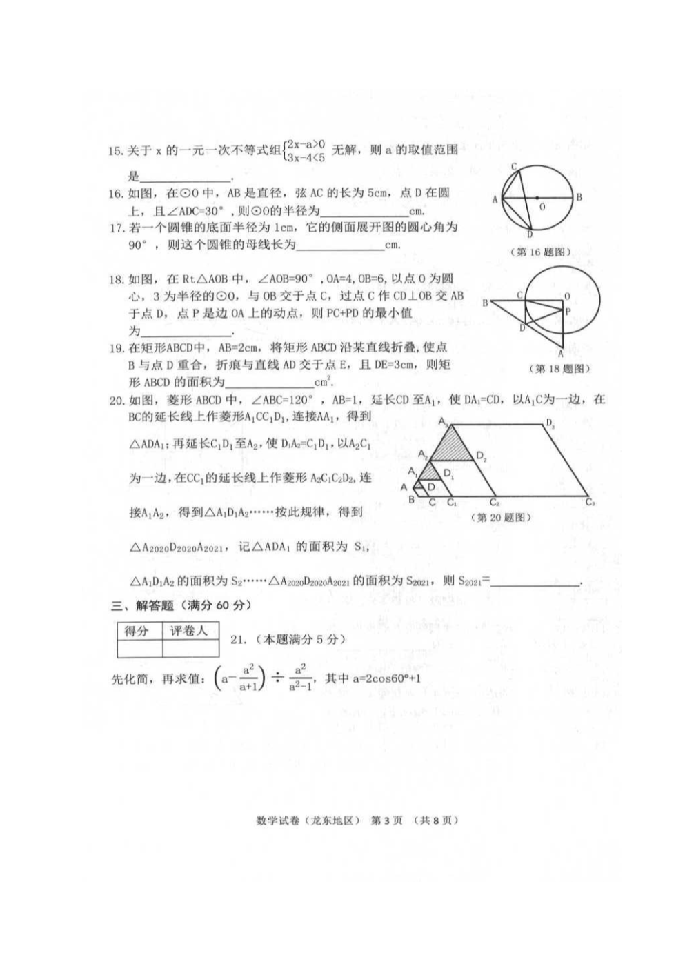 【文档名称】 2021年黑龙江伊春中考数学真题及答案(图片版).doc