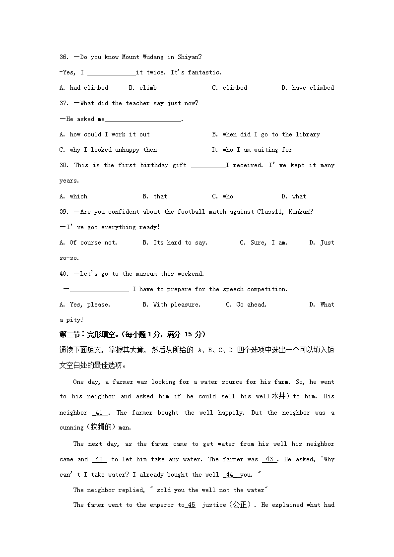 【文档名称】 2021年湖北省十堰市中考英语试题及答案(Word版).doc