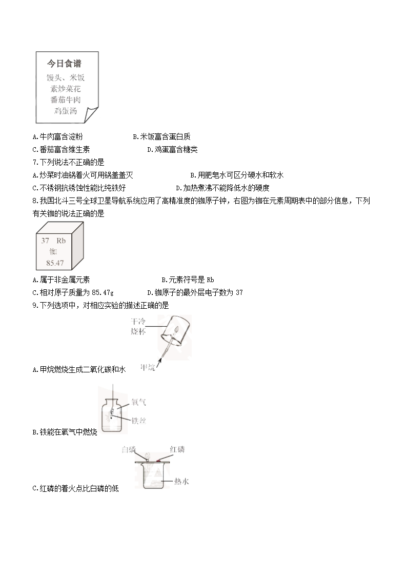 【文档名称】 2021年天津红桥中考化学试题及答案(Word版).doc