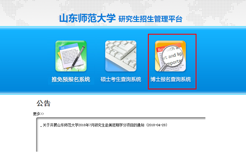第一步:打开网址,点击博士报名查询系统并登陆。
