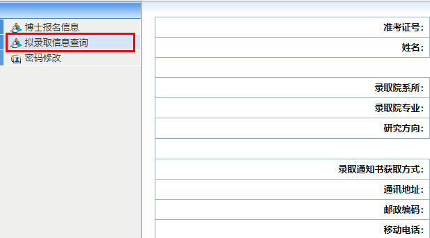 第二步:点击左侧拟录取信息查询,仔细核对右侧信息,如录取院系所、专业、研究方向等,有问题及时联系研招办进行修改。