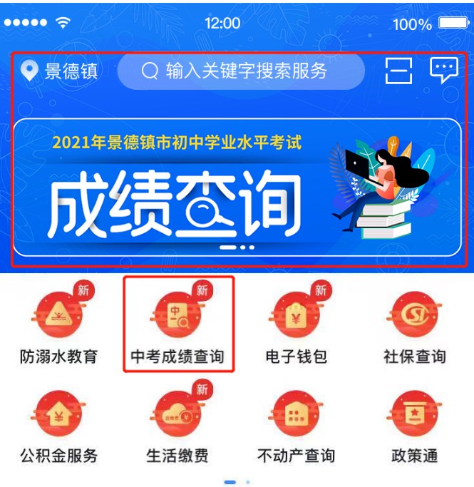 智慧瓷都APP初中学业水平考试成绩查询