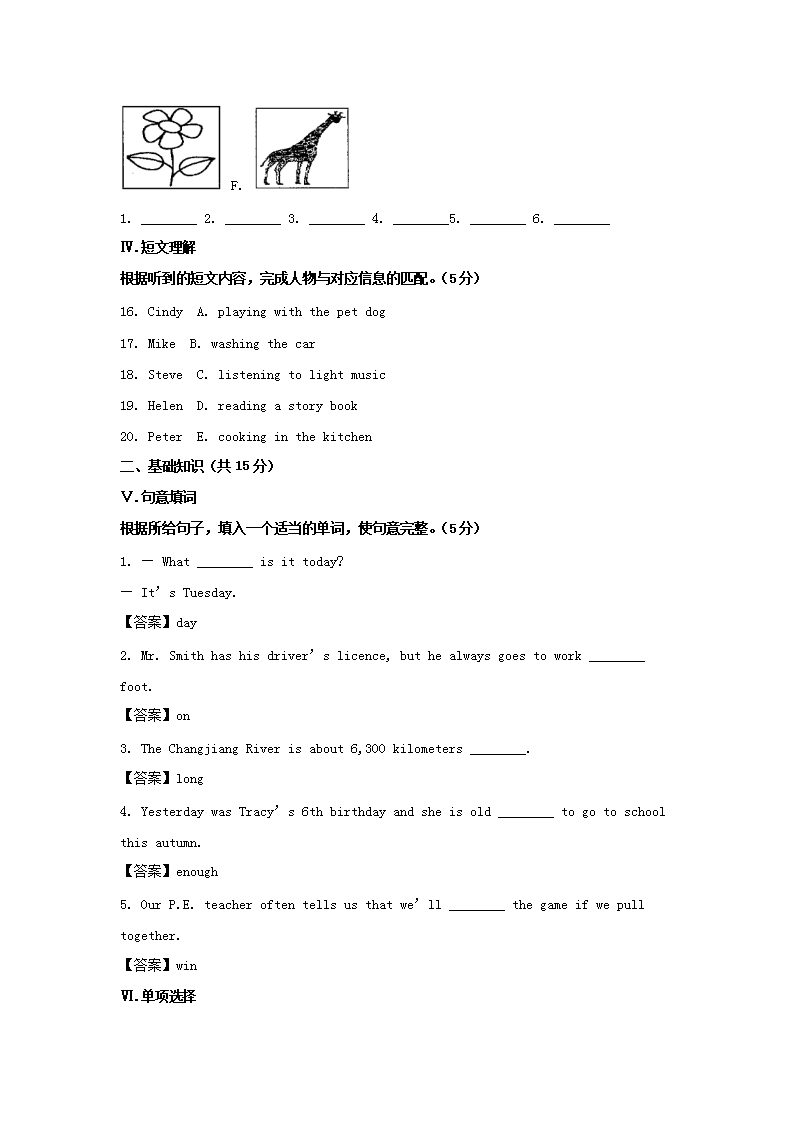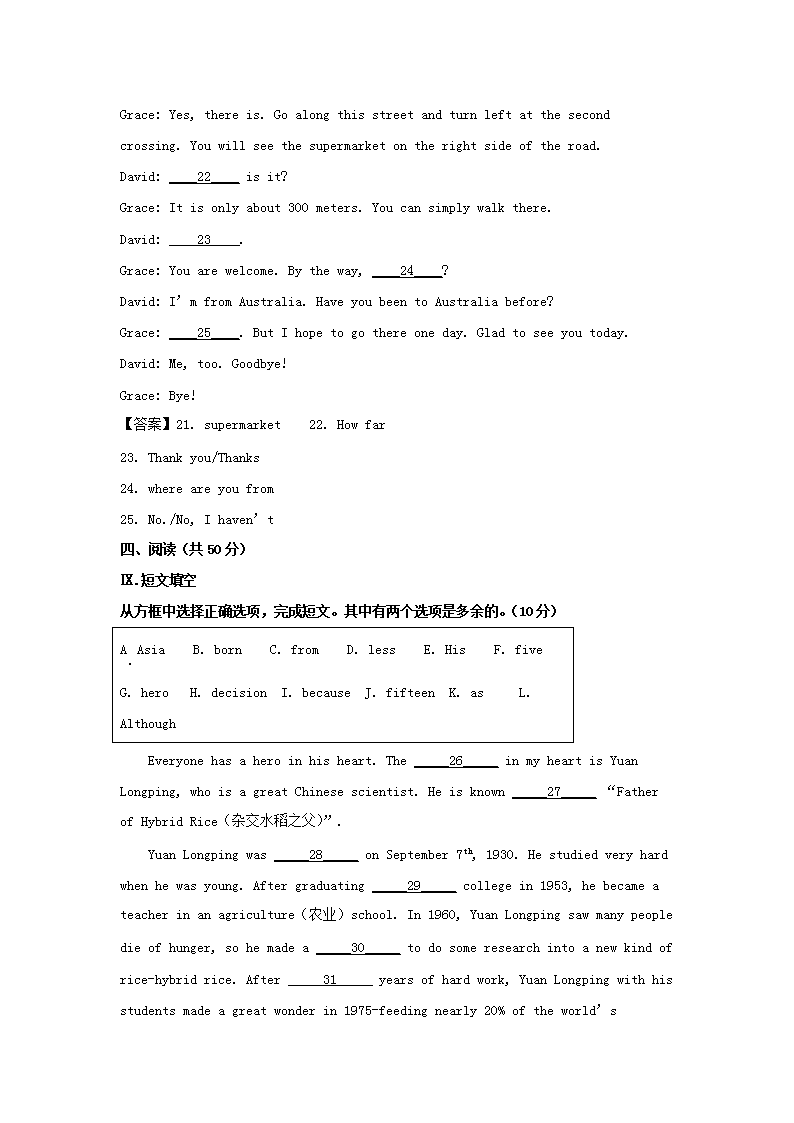 【文档预览】 无忧考网整理发布2021年吉林白城中考英语真题及答案(Word版),前五页预览如下: