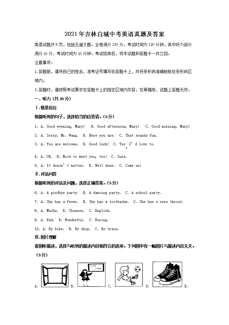 【文档名称】 2021年吉林白城中考英语真题及答案(Word版).doc