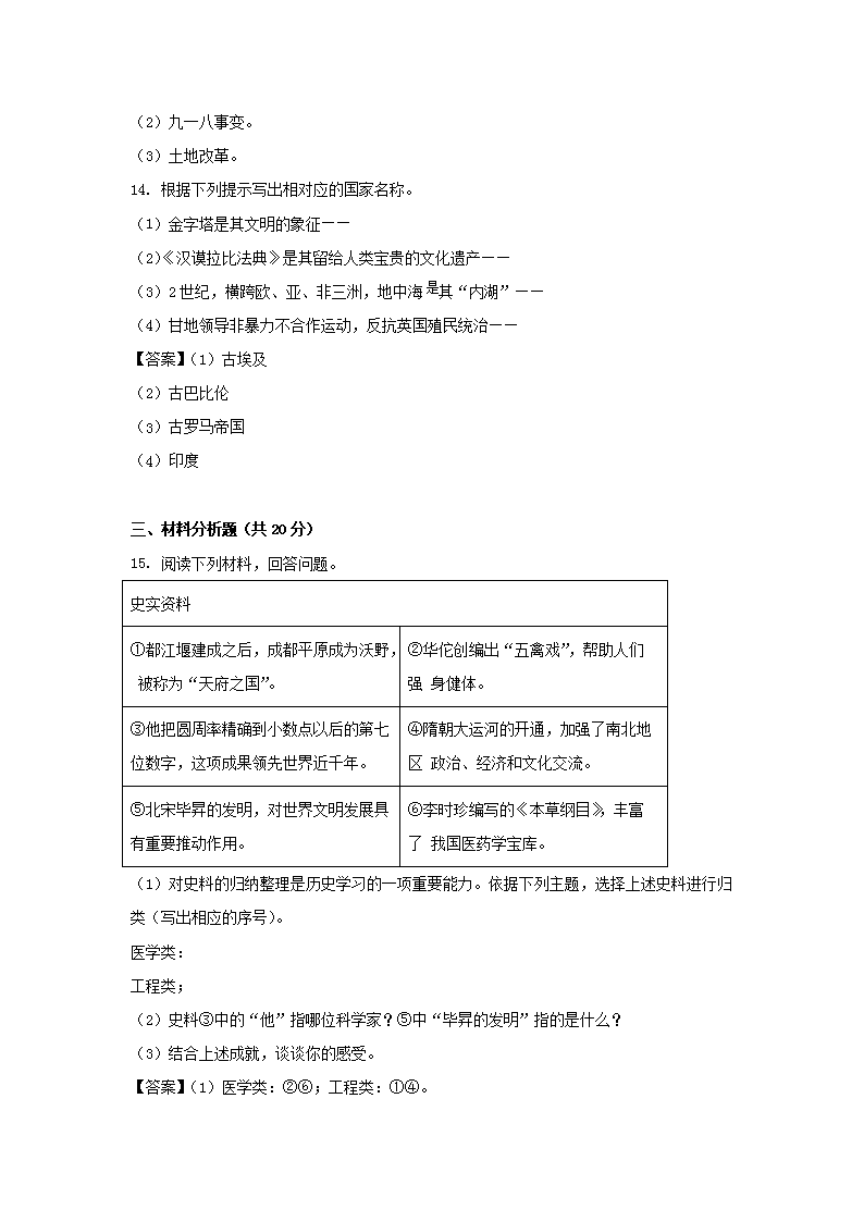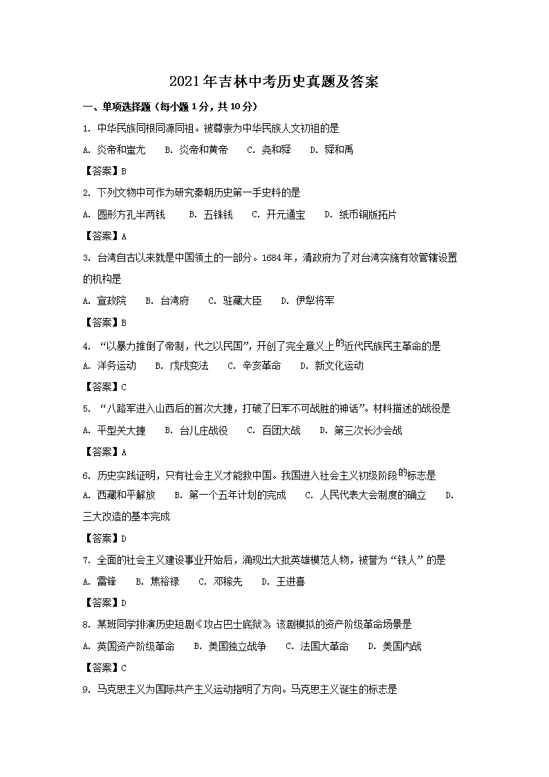 【文档名称】 2021年吉林中考历史真题及答案(Word版).doc