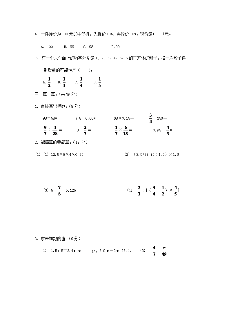 【文档预览】 无忧考网整理发布2019年四川广元小升初数学真题及答案(Word版),前五页预览如下:
