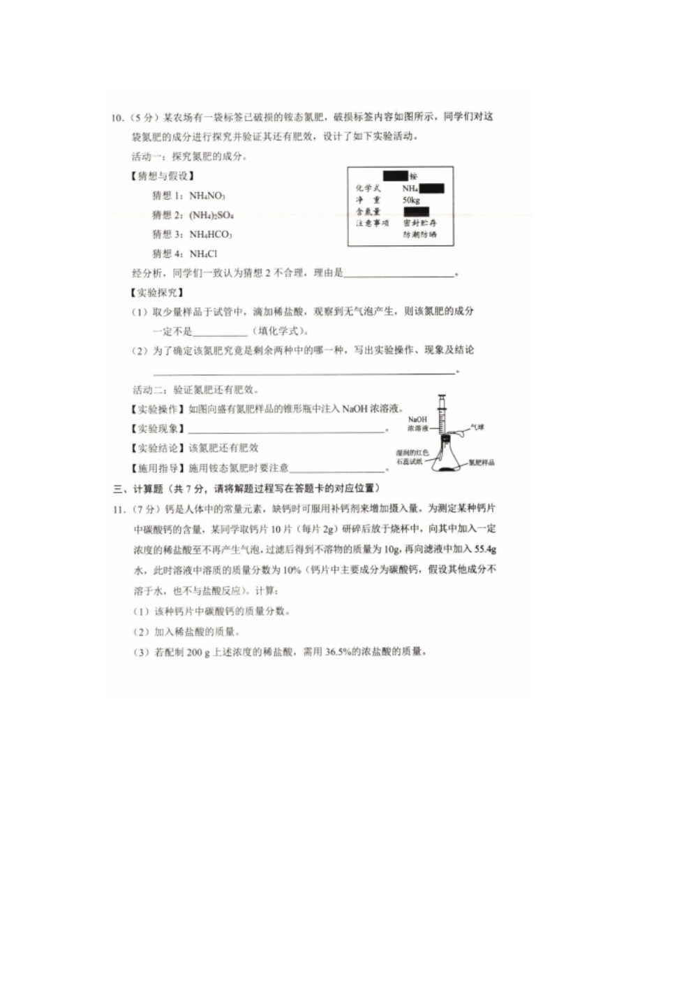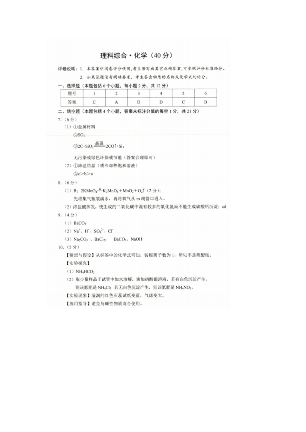 【文档名称】 2021年内蒙古包头市中考化学真题及答案(图片版).doc