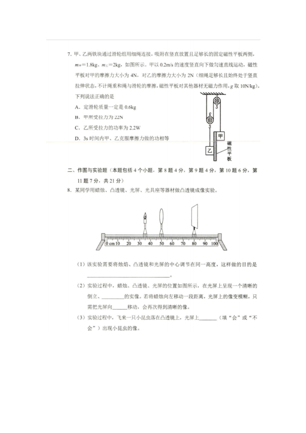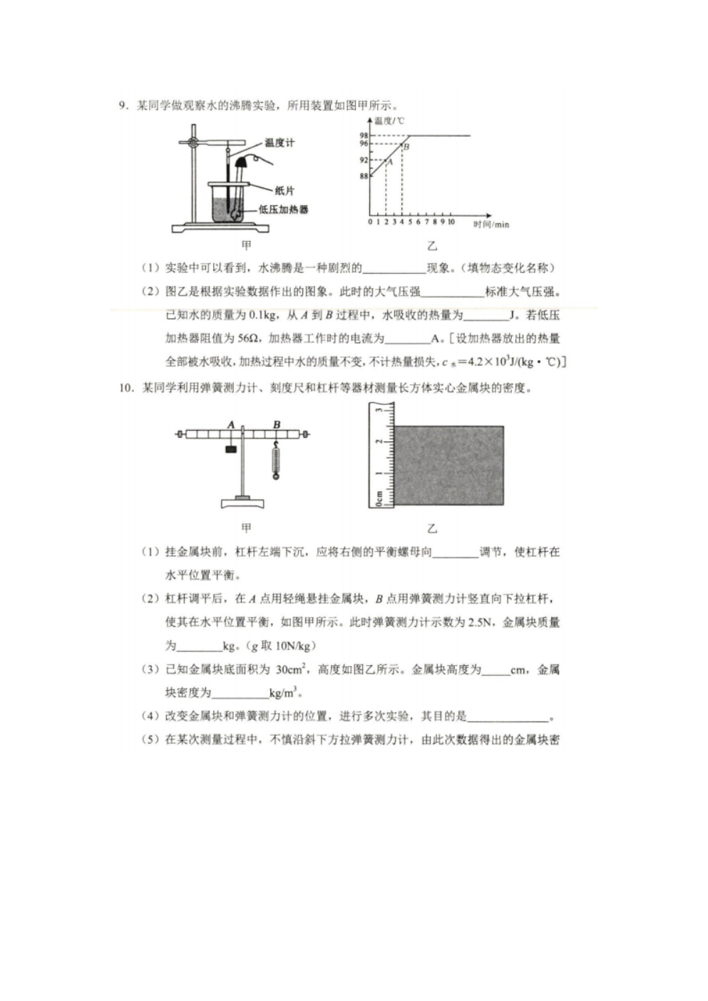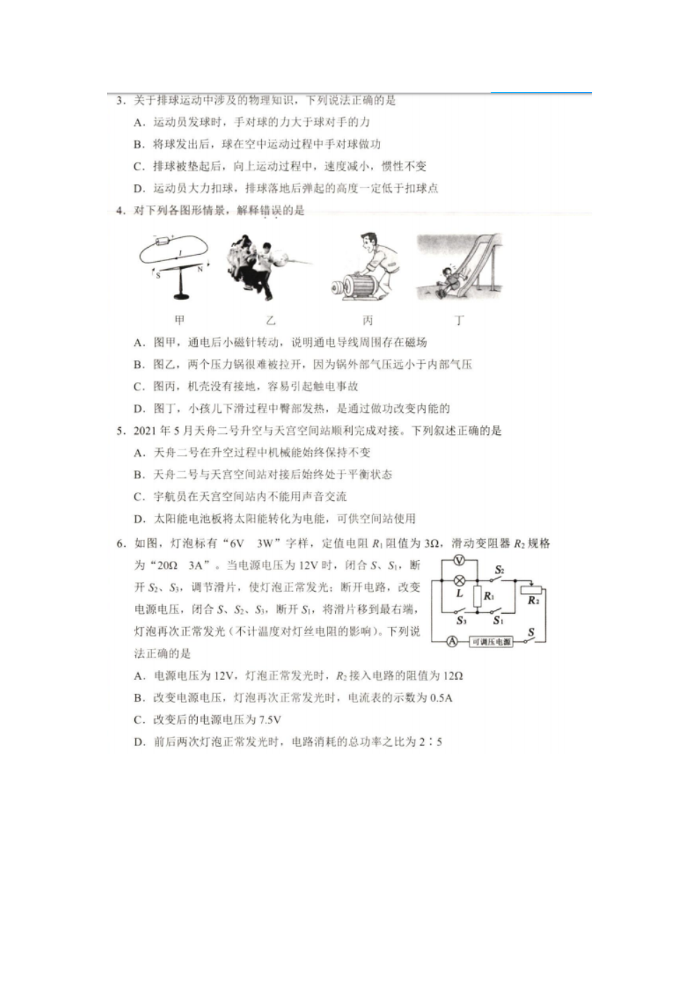 【文档名称】 2021年内蒙古包头市中考物理真题及答案(图片版).doc