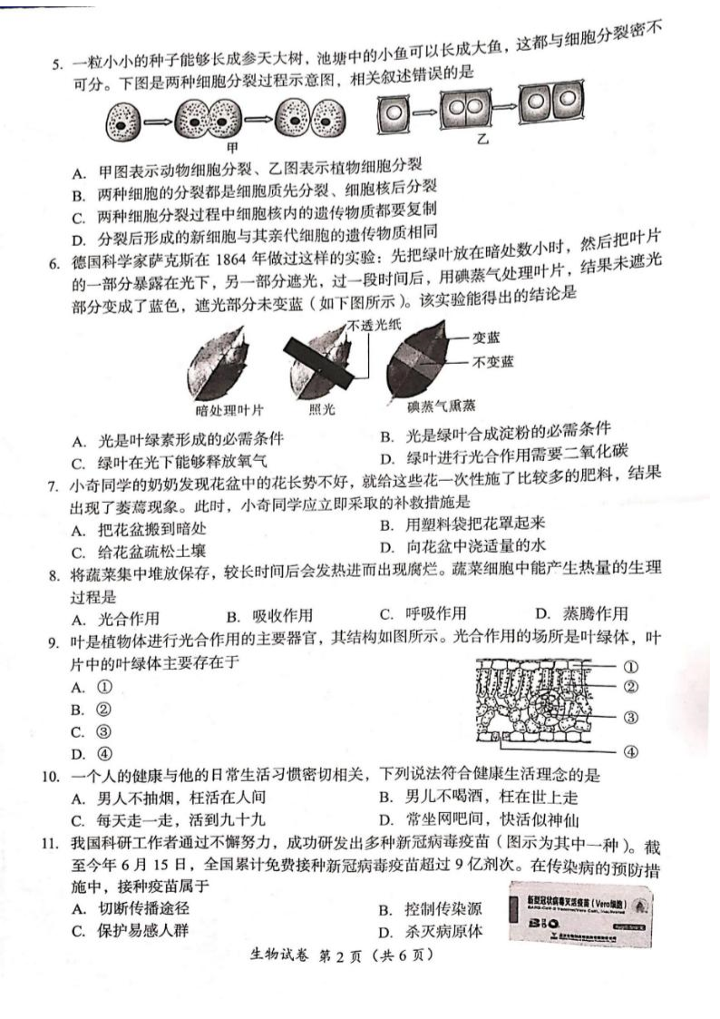 【文档预览】 无忧考网整理发布2021年四川成都中考生物真题(图片版),前五页预览如下: