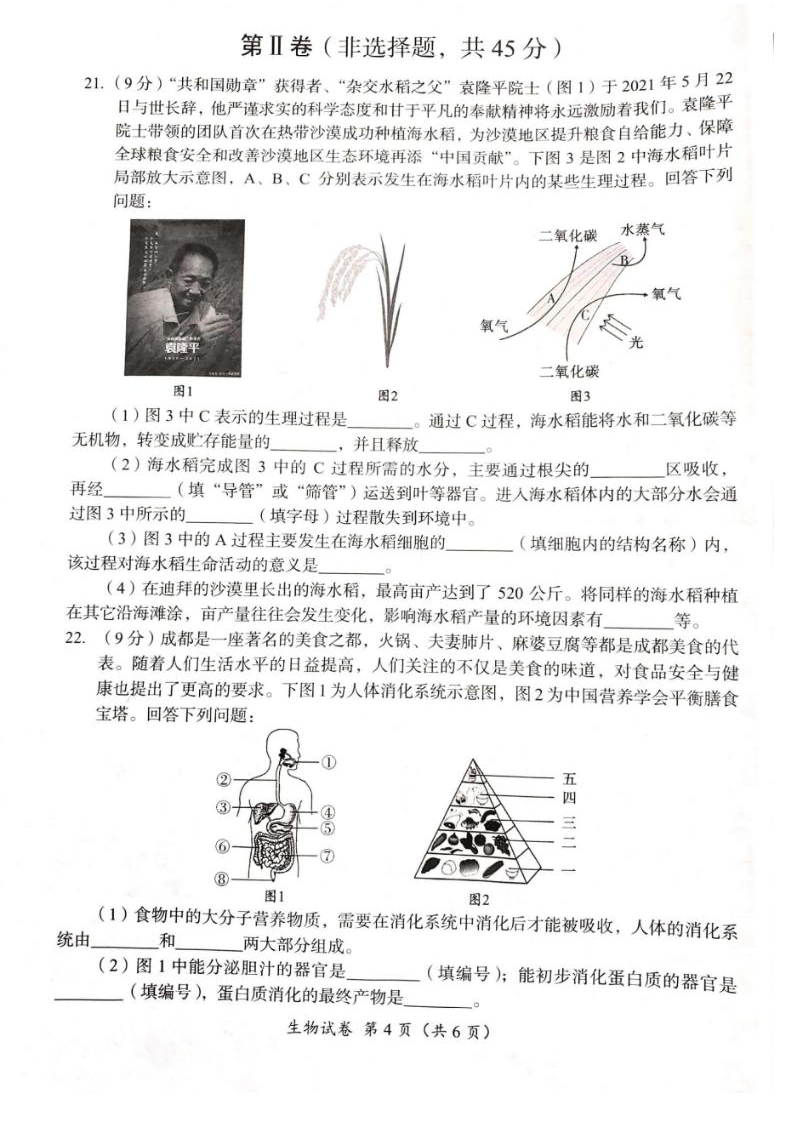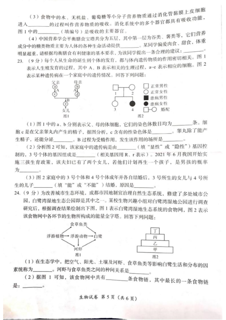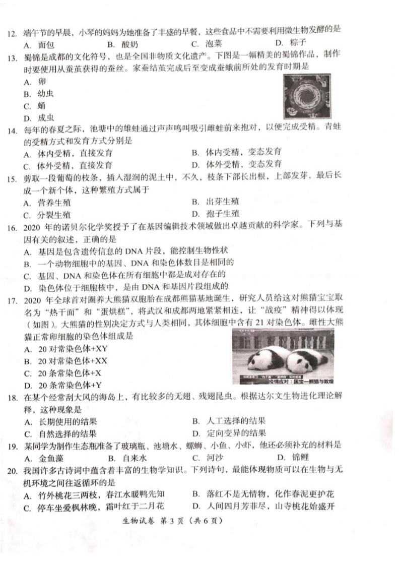 【文档名称】 2021年四川成都中考生物真题(图片版).doc