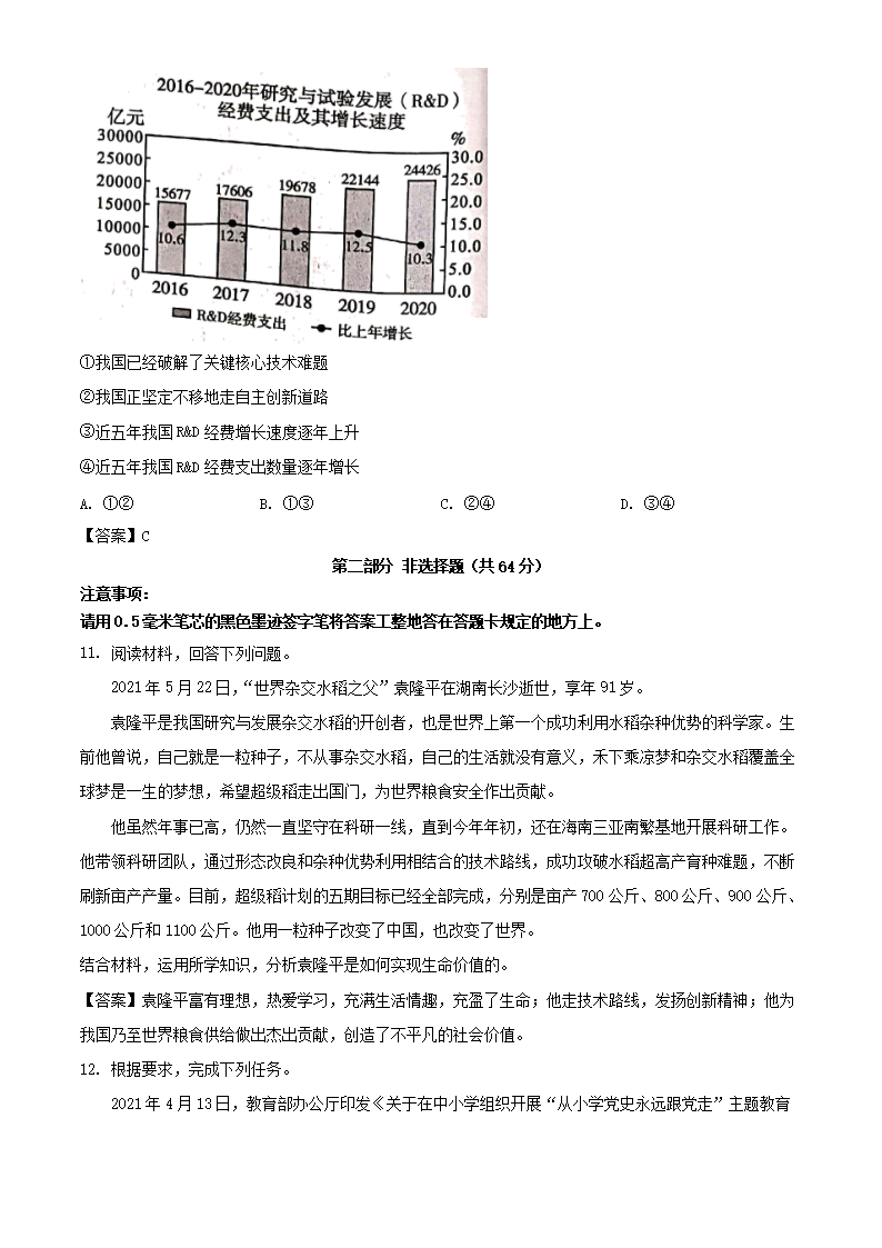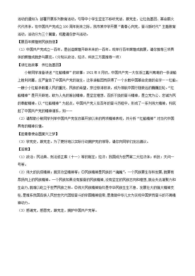 【文档名称】 2021年四川泸州中考道德与法治试题及答案(Word版).doc