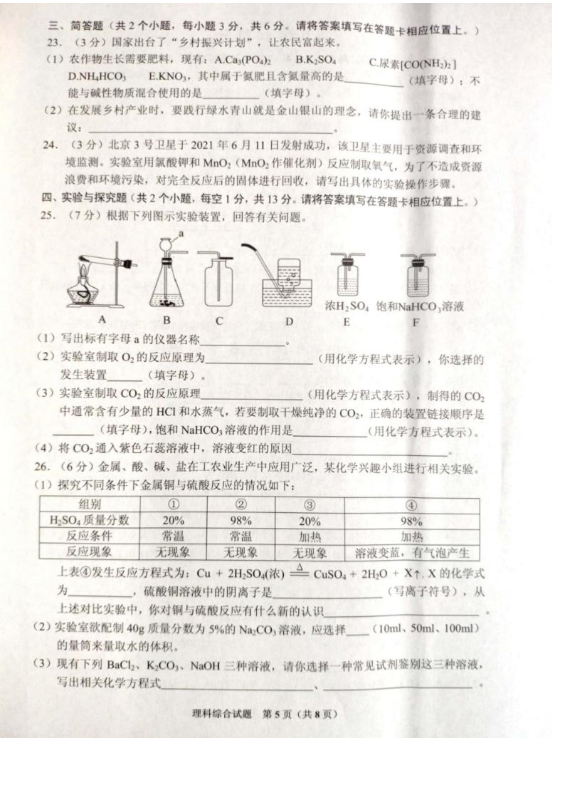 【文档名称】 2021年贵州铜仁中考理综真题(图片版).doc