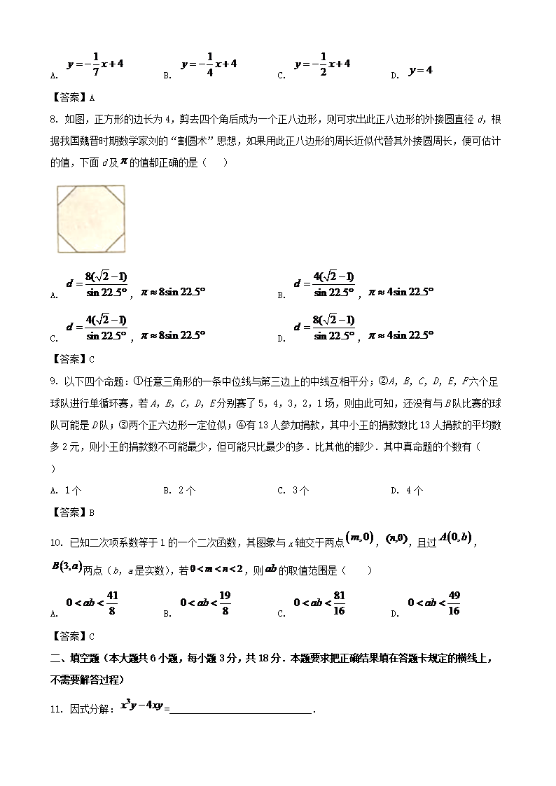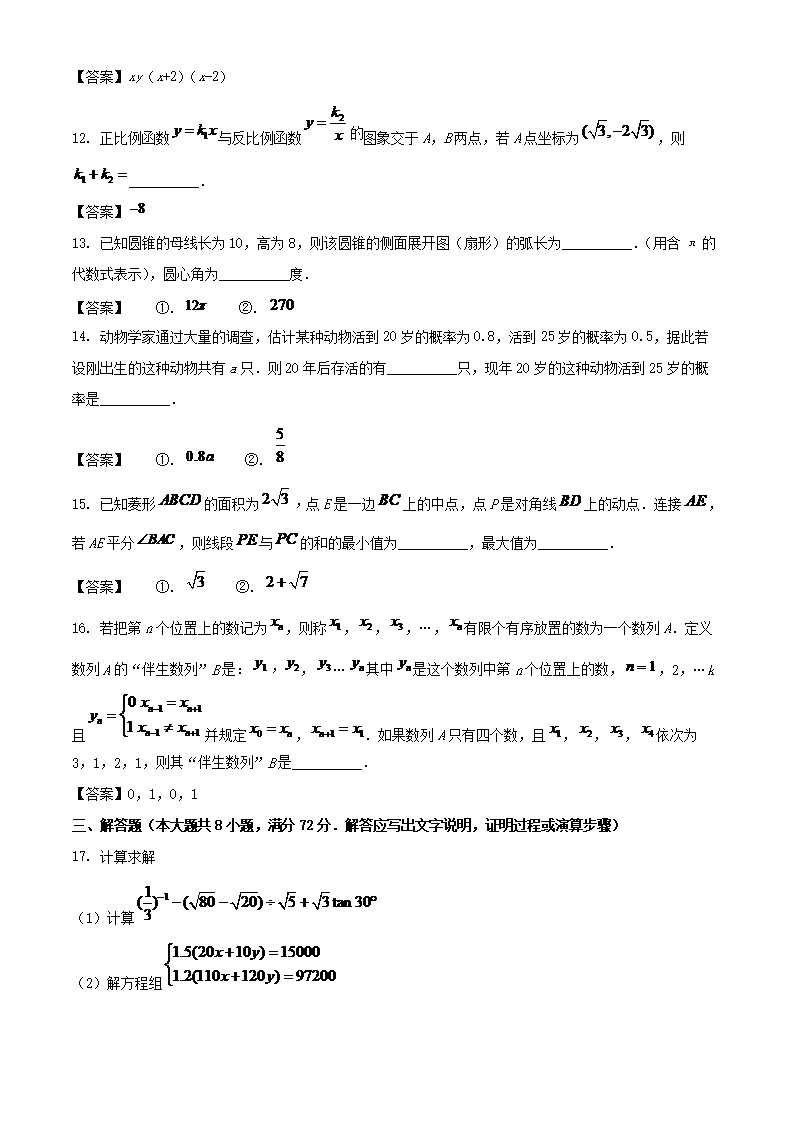 【文档名称】 2021年内蒙古呼和浩特中考数学试题及答案(Word版).doc