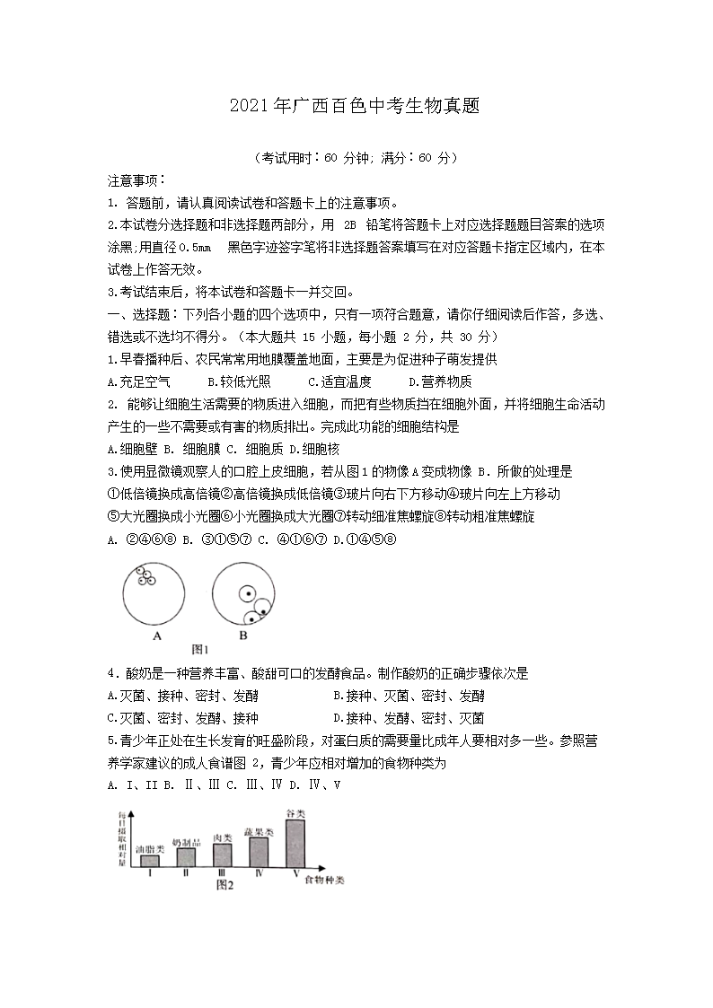 【文档名称】 2021年广西百色中考生物真题(Word版).doc