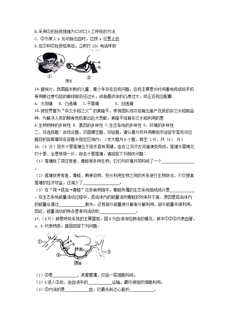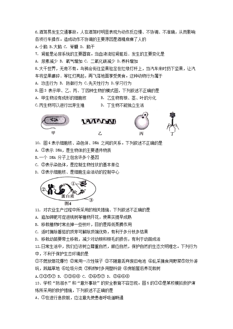 【文档预览】 无忧考网整理发布2021年广西百色中考生物真题(Word版),前五页预览如下: