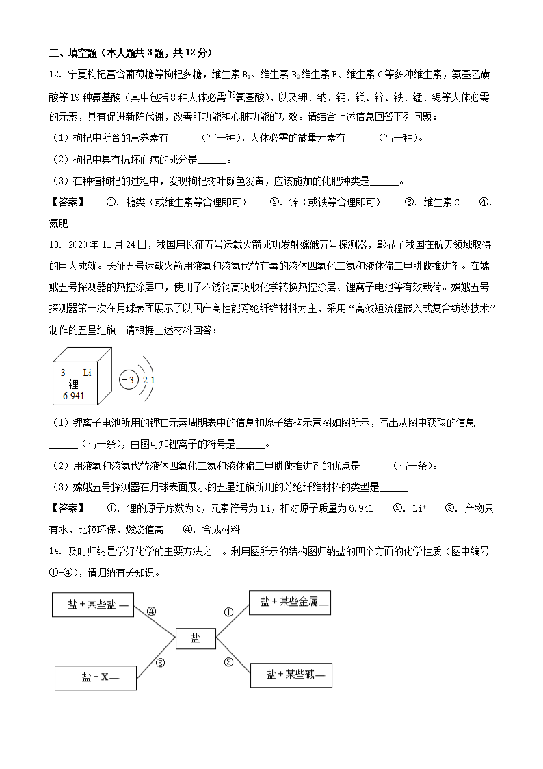 【文档名称】 2021年宁夏吴忠中考化学试题及答案(Word版).doc