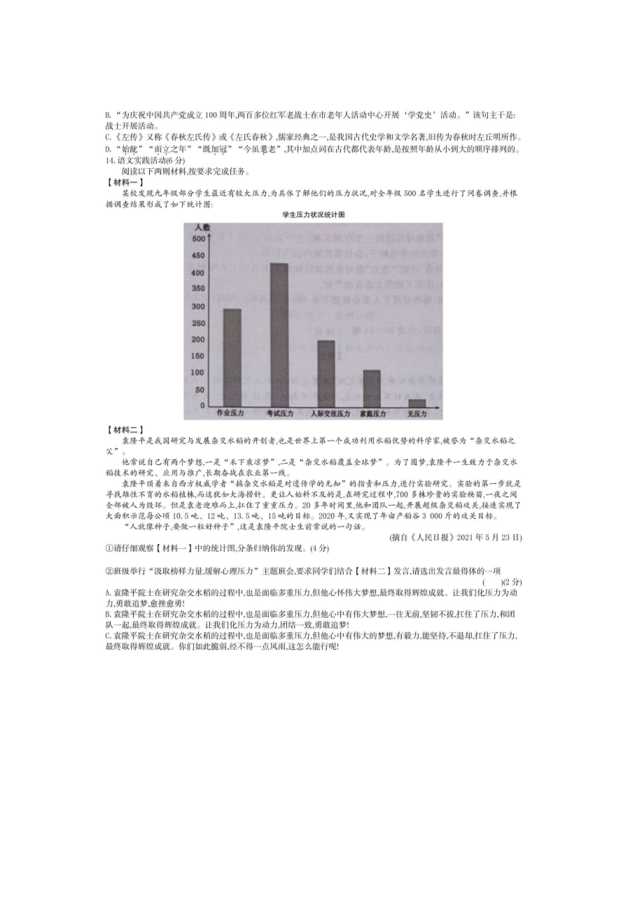 【文档名称】 2021年湖北省黄冈市中考语文真题(图片版).doc