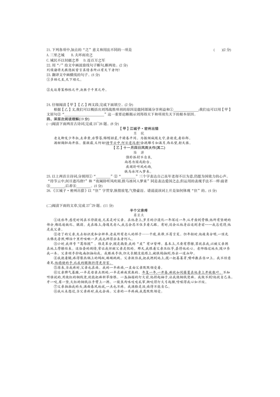 【文档预览】 无忧考网整理发布2021年湖北省黄冈市中考语文真题(图片版),前五页预览如下: