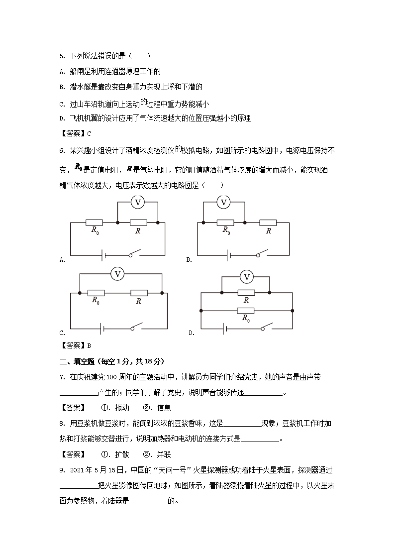 【文档预览】 无忧考网整理发布2021年吉林延边中考物理真题及答案(Word版),前五页预览如下:
