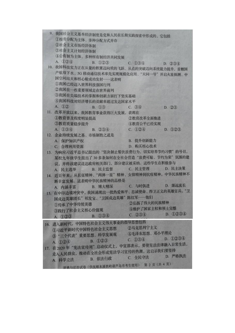 【文档名称】 2021年辽宁省本溪市中考政治真题及答案(图片版).doc