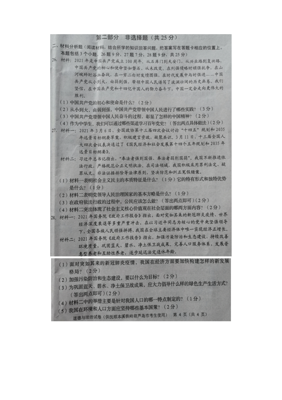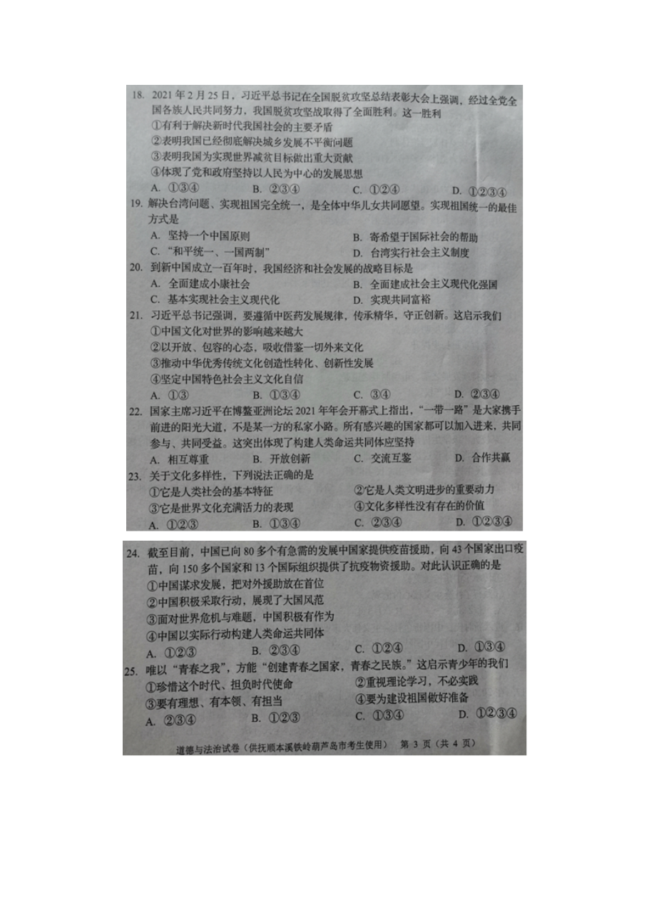 【文档名称】 2021年辽宁省抚顺市中考政治真题及答案(图片版).doc